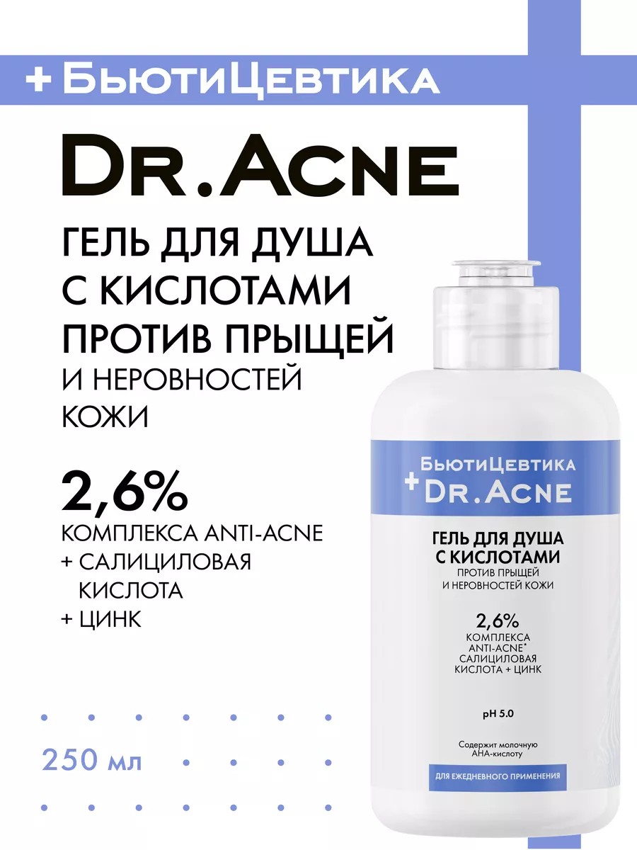 БьютиЦевтика Гель для душа с кислотами от прыщей для ухода за кожей тела