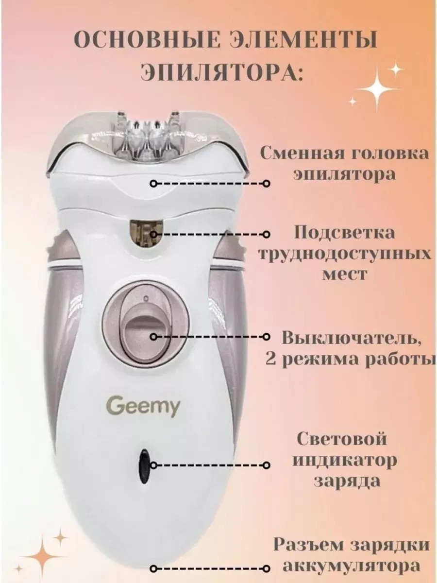| Доп. опции эпилятора | беспроводной; встроенный аккумулятор; подсветка зоны эпиляции |