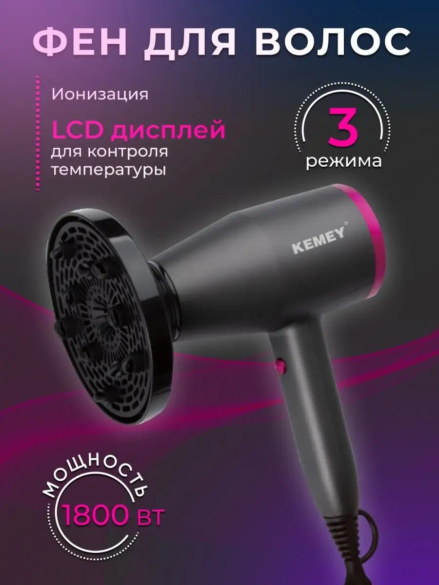 | Комплектация | насадка концентратор; Фен для волос Kemei; насадка диффузор |
