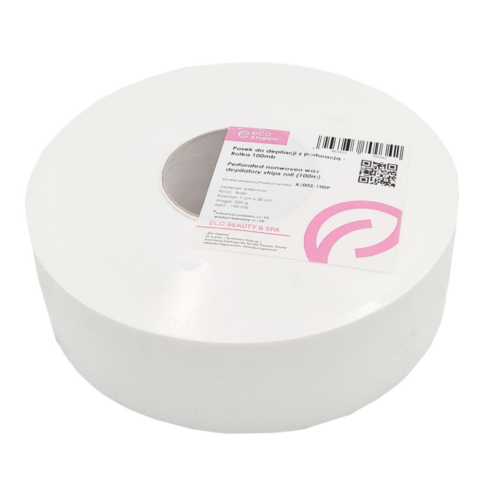 Made from high-quality material, these strips allow for effective hair removal without skin irritation. The wax adheres well to the strips, ensuring even and effective hair removal, even on thick and coarse hair. Instructions for use: 1. After applying the wax, press the strip firmly onto the skin. 2. Stretch the skin in front of the strip, and with a decisive movement, remove the strip in the opposite direction of hair growth. 3. Remove any wax residue with post-waxing oil. These hair removal strips allow you to effectively remove unwanted hair from various parts of your body (legs, chest, back, bikini area, and face). Designed for both home and professional use. A 100m roll of hair removal strips provides ample supply for extended periods. In our offer, you will find cosmetic products for many industries: for example For hair salons, spas, beauty salons, tattoo studios, tanning salons, saunas, technical industry, cleaning industry, hospitals, retirement homes, kindergartens, nurseries, etc. (towels, pads for pedicure, manicure, facial care, massage table mats, massage mats, lounge chair mats, multipurpose towels, etc.).