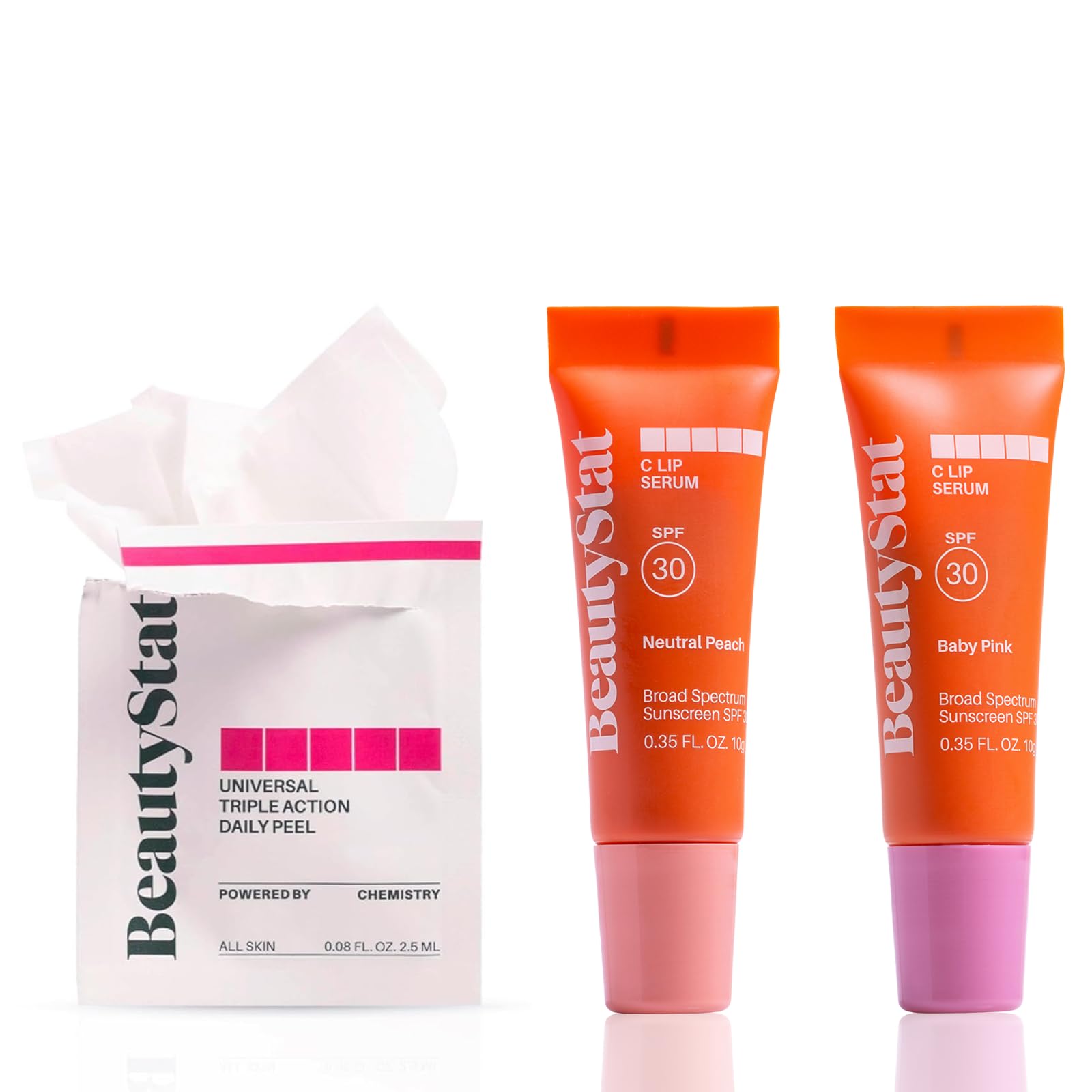 BeautyStat C-Radiance Kit Vitamin C Face Eye & Lip Collection: 10 Peel Pads + 2 Lip Serums (Baby Pink + Neutral Peach)