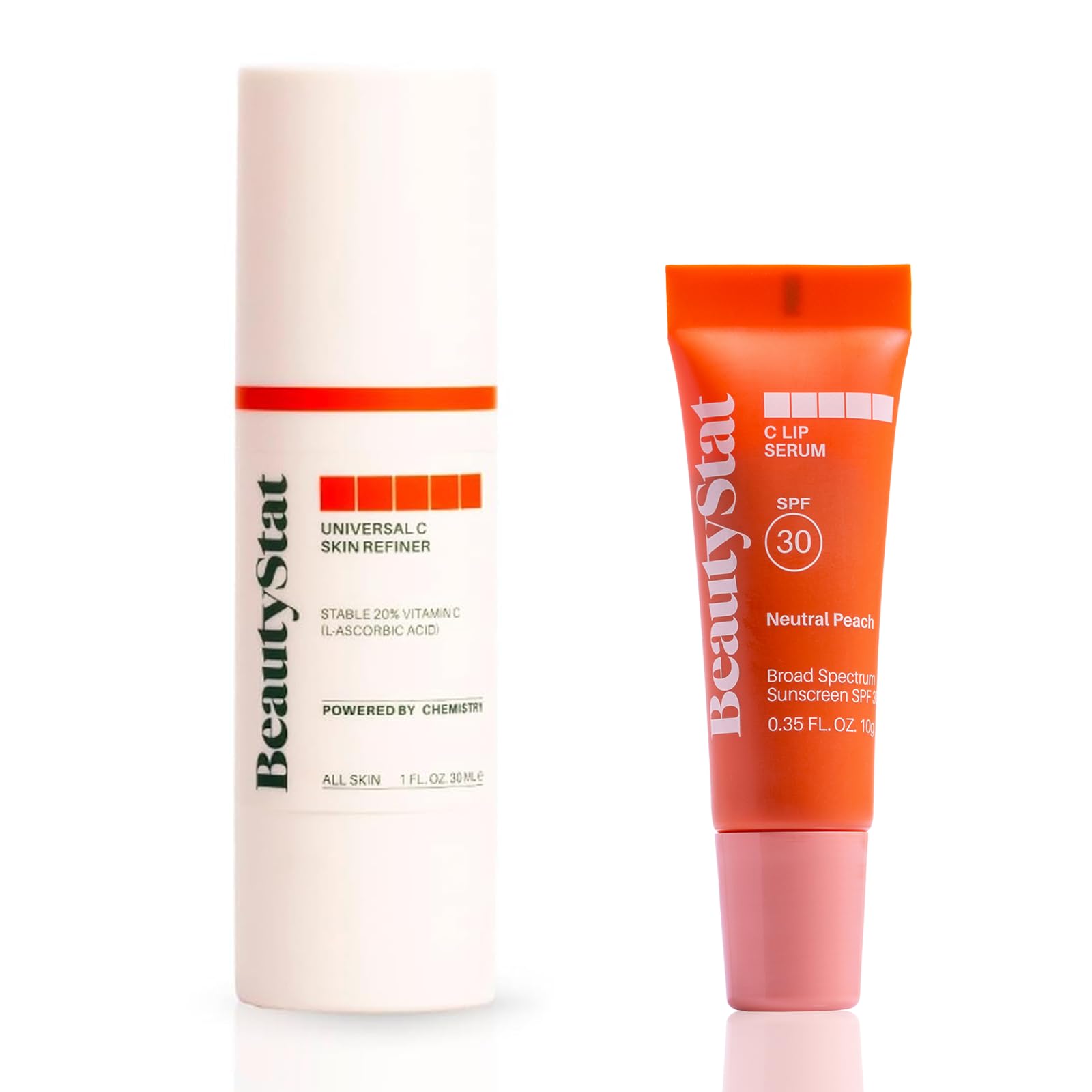 The Universal C Skin Refiner uses an airless pump and does not have a dip tube. Instead, the pump works like an elevator so that as you pump the product, the floor of the pump rises and pushes the product out. Try priming the pump by rapidly pressing the dispenser to help draw the product into the dispenser. When you think you have pumped enough times keep going. Universal for Every Type of Skin: Universal is in our name for a reason from sensitive, to dry or combination skin, the diversity of your skincare needs was a top priority. We choose the ingredients for your new, uniquely powerful serum to perform. We thought of everything. Scientifically Formulated, Patented Clinically Tested: We took over 5 years to create the BeautyStat Universal C Skin Refiner with stable Vitamin C for you. Our Universal C Skin Refiner is stable (so it works), triple patented, fragrance free, clinically tested, cruelty-free perfected to help reduce the look of fine lines, wrinkles, even skin tone, increase firmness create smoother skin texture. SPF 30 Mineral Protection Broad-spectrum sun defense without the white cast.