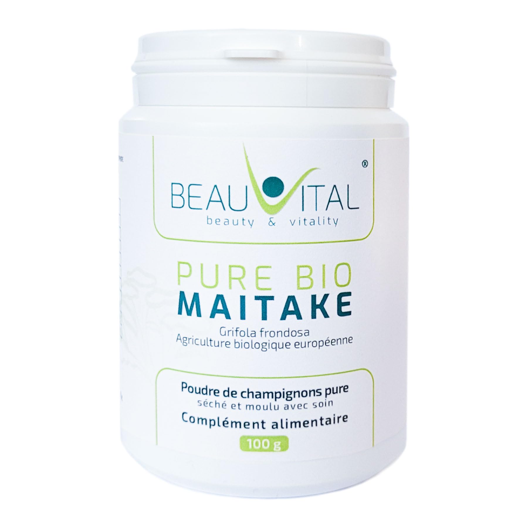 Maitake Mushroom Maitake Powder Rattlesnake Scientific name: Grifola frondosa The maitake mushroom was already a delicacy in Asia centuries ago. Collectors always kept its locations secret due to the value of its ingredients. Today, the maitake mushroom is a sought-after edible mushroom and is of great interest to the pharmaceutical industry as a medicinal mushroom. Maitake is the subject of numerous studies in Europe and the SAFETY WARNING Do not exceed the recommended dose. Food supplements should not be used as a substitute for a varied and balanced diet and, in general, a healthy lifestyle.ECO-FRIENDLY PACKAGING: Bioplastic box (HD-PE derived from sugarcane), bagasse sticker (waste from sugar production). ORGANIC MAITAKE POWDER produced in Austria using organically grown mushrooms exclusively from the Alps in the EU. Organic maitake mushrooms are dried, ultra-finely and gently ground. Grown in nature without environmental benefits. Maitake powder is naturally vegan, gluten-free, fructose-free, lactose-free, and free of magnesium stearate and silicon dioxide. PURE MAITAKE MUSHROOM without any additives, fillers, separating agents, colorings, or flavorings. 100g of ORGANIC MAITAKE POWDER is guaranteed to contain at least 27 polysaccharides. EUROPEAN ORGANIC MUSHROOM: Grifola frondosa, produced and packaged in Europe (no imports from China).Pure Bio Maitake Champignon 100 g Grifola Frondosa Poudre de Maitake issue de l'agriculture biologique de l'UE, végétalien, éponge à sonnette sans additifs artificielsDESCRIPTION DU PRODUIT DESCRIPTION DU PRODUIT Champignon Maitake Poudre de Maïtaké Serpent à sonnette Lat: Grifola frondosa Le champignon maitake était déjà une spécialité en Asie il y a des siècles. Les collectionneurs ont toujours gardé les lieux secrets en raison de la valeur des ingrédients. Aujourd'hui, le champignon maitake est un champignon comestible recherché et présente un grand intérêt pour l'industrie pharmaceutique en tant que champignon médicinal. Le Maitake fait l'objet de nombreuses études en Europe et aux AVERTISSEMENT DE SÉCURITÉ Ne pas dépasser la dose recommandée. Les compléments alimentaires ne peuvent se substituer à une alimentation variée et équilibrée, ni, de manière générale, à un mode de vie sain.EMBALLAGE RESPECTUEUX DE L'ENVIRONNEMENT : boîte en bioplastique (HD-PE issu de la canne à sucre), autocollant en bagasse (déchet de la fabrication du sucre). POUDRE DE MAITAKE BIO fabriquée en Autriche avec des cultures biologiques exclusivement dans les Alpes dans l'UE. BIO MAITAKE getrocknet, ultrafein und schonend vermahlen. Gewachsen im Reinraum ohne Umweltgifte. MAITAKE PULVER naturellement végétalien, sans gluten, sans fructose, sans lactose, sans stéarate de magnésium ni dioxyde de silicium. PUR CHAMPIGNON MAITAKE sans aucun additif, agent de remplissage ou de séparation, colorant ou aromatisant. 100 g de POUDRE DE MAITAKE BIO garantie avec au moins 27 de polysaccharides. CHAMPIGNON BIO EUROPÉEN : Grifola frondosa de production et de conditionnement européens (pas d'importation de Chine).