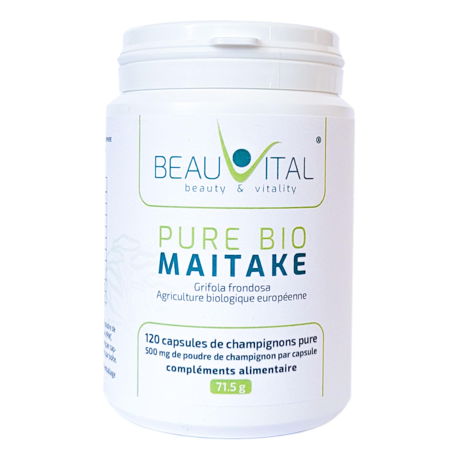 Maitake Mushroom Maitake Powder Snap Sponge Scientific Name: Grifola Frondosa The Maitake mushroom was a delicacy in Asia centuries ago. Collectors always kept its locations secret due to its valuable ingredients. Today, the Maitake mushroom is a highly sought-after edible mushroom and a vital fungus of great interest to pharmaceuticals. Maitake is the subject of numerous research studies in Europe and the United States. Our organic Maitake powder contains all the ingredients in their natural concentration and composition. It contains numerous polysaccharides such as beta-glucan, griffolin, and griffolin, as well as ergosterol and provitamin D. The importance of organic quality for mushrooms like Maitake. Mushrooms have the ability to absorb and store environmental toxins. Thus, during conventional cultivation, undesirable substances can accumulate in the mushroom. Our vital Shiitake mushrooms are cultivated and bottled in Europe under strict organic certification. The entire organic manufacturing and supply chain is closely monitored by official certification bodies to ensure we offer you the highest organic quality. A particularly gentle and specially developed grinding process ensures an ultra-fine powder for optimal absorption by the body. Research and Development. We work exclusively with partners who not only cultivate high-quality mushrooms but are also involved in research and development. This allows us to guarantee the best possible cultivation methods and a superior finish. Contents: Pack of 120 vegan capsules, each containing 500 mg of pure organic Shiitake powder. Suitable for vegetarians and vegans. Recommended Use: Take one capsule (1000 mg) whole with plenty of liquid. INGREDIENTS Grifola Frondosa DIRECTIONS Take 2 capsules daily whole with plenty of liquid. Pregnant and breastfeeding women should consult their doctor before use. Pets: 500 mg per 10 kg of body weight. SAFETY WARNING Do not exceed the recommended dose. Food supplements are not a substitute for a varied and balanced diet and a generally healthy lifestyle. See moreConstant testing: Each batch is individually laboratory-tested for quality and harmful substances. Environmentally friendly packaging: Bioplastic box (high-density polyethylene made from sugarcane), bagasse sticker (waste from sugar production). Organic Maitake capsules made in Austria with organically grown mushrooms exclusively from the EU Alps. Dried, ultra-finely ground, and gently ground organic Maitake. Grown in a cleanroom free of environmental toxins. Naturally vegan Maitake powder, gluten-free, fructose-free, lactose-free, magnesium stearate-free, and silicon dioxide-free. Pure Maitake mushroom with no additives, fillers, separating agents, colorings, or flavorings. 120 vegan capsules, 500 mg of organic Maitake powder with at least 27 guaranteed polysaccharides. European organic mushroom: Grifola frondosa, European-grown and filled (no imports from China).Pure Bio Maitake Lot de 120 gélules Grifola Frondosa de 500 mg par poudre issue de l'agriculture biologique de l'UE, végétalien, sans additifs artificielsDESCRIPTION DU PRODUIT DESCRIPTION DU PRODUIT Maitake Champignon Poudre Maitake Éponge à cliqueter Lat: Grifola Frondosa Le champignon Maitake était une particularité dans la région asiatique il y a des siècles. Les collectionneurs ont toujours gardé les lieux secrets en raison des ingrédients précieux. Aujourd'hui, le champignon Maitake est un champignon alimentaire très recherché et un champignon vital d'un grand intérêt pour la pharmacie. Le Maitake est l'objet de recherche de nombreuses études en Europe et aux États-Unis. Notre poudre bio Maitake contient tous les ingrédients de la concentration et de la composition naturelles. Les nombreux polysaccharides tels que le bêta-glucane, le grifolin et le grifolan ainsi que l'ergostérol et la provitamine D. Importance de la qualité biologique pour les champignons comme le Maitake. Les champignons ont la propriété d'absorber et de stocker les toxines environnementales. Ainsi, lors de la culture traditionnelle, les substances indésirables peuvent s'accumuler dans le champignon. Nos champignons vitaux Shiitake sont cultivés et mis en bouteille en Europe dans des conditions strictes et certifiés BIO. L'ensemble de la chaîne de fabrication et d'approvisionnement BIO est étroitement contrôlée par des organismes de certification officiels afin que nous puissions vous offrir la meilleure qualité BIO. Un processus de broyage particulièrement doux et spécialement développé assure une poudre ultra fine pour une meilleure absorption possible par le corps. Recherche et développement. Nous travaillons exclusivement avec des partenaires qui effectuent non seulement une culture de haute qualité, mais qui sont également impliqués dans la recherche et les études. Cela nous permet de garantir les meilleures méthodes de culture possibles et une finition de qualité supérieure. Contenu : Lot de 120 capsules végétaliennes contenant chacune 500 mg de poudre Maitake bio pure. Convient aux végétariens et végétaliens. Recommandation d'utilisation : Prendre des gélules quotidiennes (1000 mg) entières dans beaucoup de liquide. INGRÉDIENTS Grifola Frondosa MODE D'EMPLOI Prenez 2 gélules par jour entières avec beaucoup de liquide. Pour les femmes enceintes et allaitantes, veuillez consulter leur médecin avant de l'utiliser. Animaux de compagnie : 500 mg par 10 kg de poids corporel. AVERTISSEMENT DE SÉCURITÉ Ne pas dépasser la dose recommandée. Les compléments alimentaires ne remplacent pas une alimentation variée et équilibrée et généralement un mode de vie sain. Voir plusTests constants : chaque lot est testé individuellement en laboratoire pour la qualité et les substances nocives. Emballage respectueux de l'environnement : boîte en plastique bio (polyéthylène haute densité de canne à sucre), autocollant en bagasse (déchets de la fabrication du 