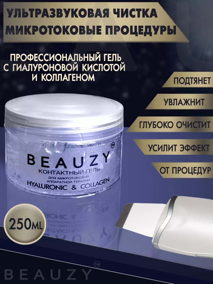 Микротоковая терапия-мощная технология омоложения кожи. Для достижения максимального эффекта применяйте токопроводящие косметические средства. Микротоковый контактный гель Beauzy имеет нейтральный состав, не вызывает аллергии, легко наноситься на кожу и не растекается, дольше, чем другие средства не впитывается, облегчая скольжение косметологического аппарата. Медиагель создает электропроводящую среду для микротоков, служит контактной средой для физиотерапевтических воздействий. Гель для ультразвуковой чистки лица подходит для ионофореза, микротоковой терапии, радиоволнового лифтинга, лазерной эпиляции. В составе гиалуроновая кислота, коллаген и активные добавки, они подтягивают кожу, оказывают омолаживающее действие, улучшают внешний вид кожи, уменьшают морщины. Контактный лифтинг гель помогает раскрывать поры, без пара. Идеально применять с микротоковыми массажерами Beauzy. Для всех типов кожи. Объем 250 мл.
