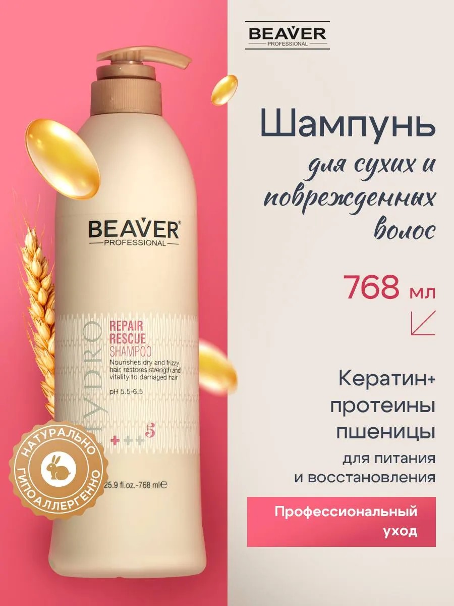 Beaver Шампунь для волос профессиональный восстанавливающий 768 мл