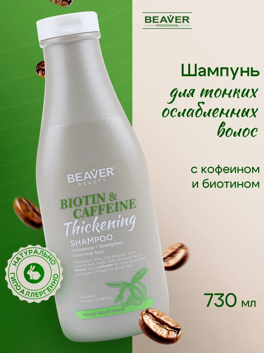 Beaver Шампунь для волос с биотином и кофеином 730 мл