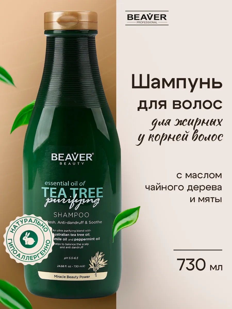 Beaver Шампунь для волос с маслом Чайного дерева 730 мл