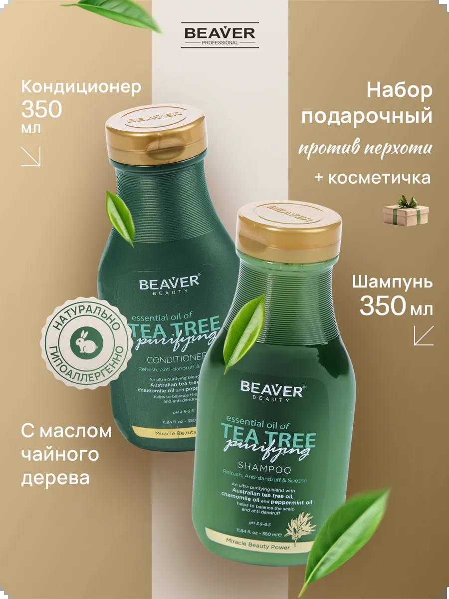 Шампунь и бальзам для волос от BEAVER включающий бессульфатный шампунь для волос женский и бальзам с маслом австралийского чайного дерева и перечной мяты. Этот набор уходовой косметики обеспечивает полноценный уход за волосами, борется с перхотью и придает волосам жизненную силу.
