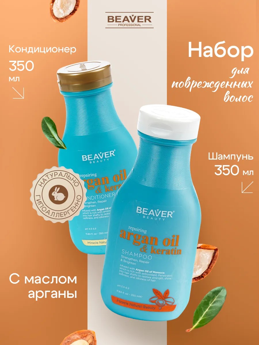 Beaver Шампунь и бальзам для волос с маслом Арганы 350/350 мл