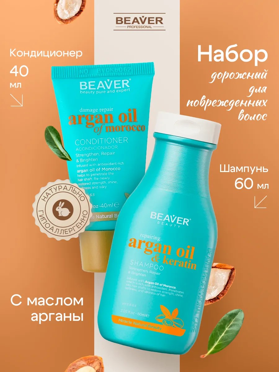 Beaver Шампунь и бальзам для волос с маслом Арганы 60/40 мл