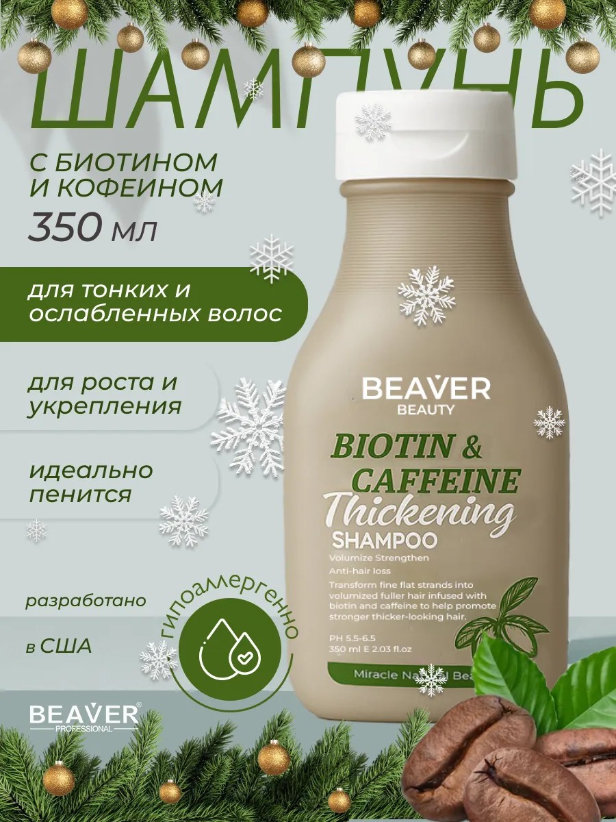 Beaver Шампунь с Биотином и Кофеином, 350 мл