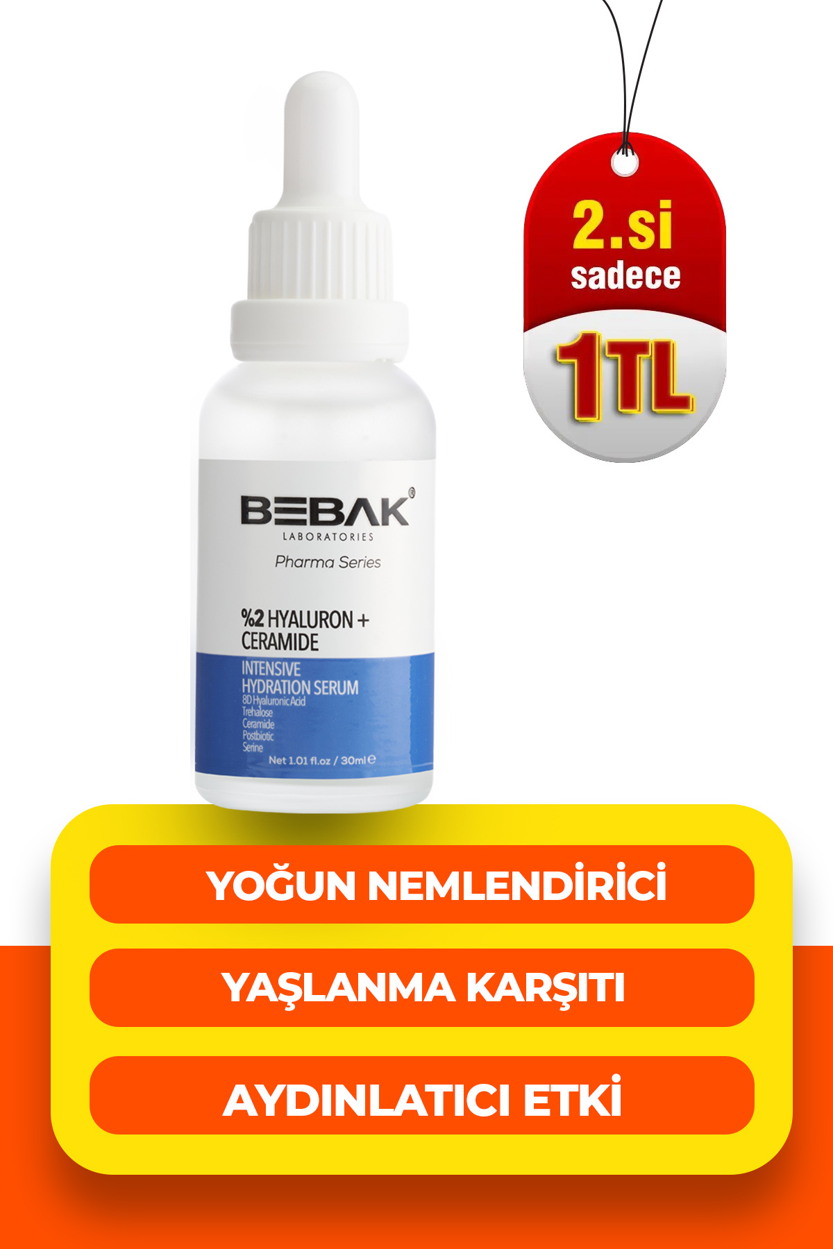 Bebak Pharma 8D Intensive Moisturizing Care Serum provides intense moisture support to the skin with the Panthenol in its formula, while its special formula reinforced with Trehalose and Ceramide aims to create a healthy and radiant skin appearance by strengthening the barrier layer of the skin. With the combination of 8 types of Hyaluronic Acid with different properties, it penetrates into different layers of the skin, combats wrinkles and helps maintain moisture balance. It provides long-term intense moisturization to the skin, providing a fresh, bright, radiant and vibrant appearance. The Ceramide in its content provides barrier repair of the skin and prevents skin aging with Trehalose and provides effective protection of the epidermis cell.