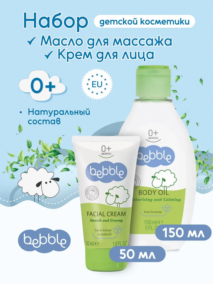 BEBBLE Набор детской косметики Масло для массажа, Крем для лица 0+