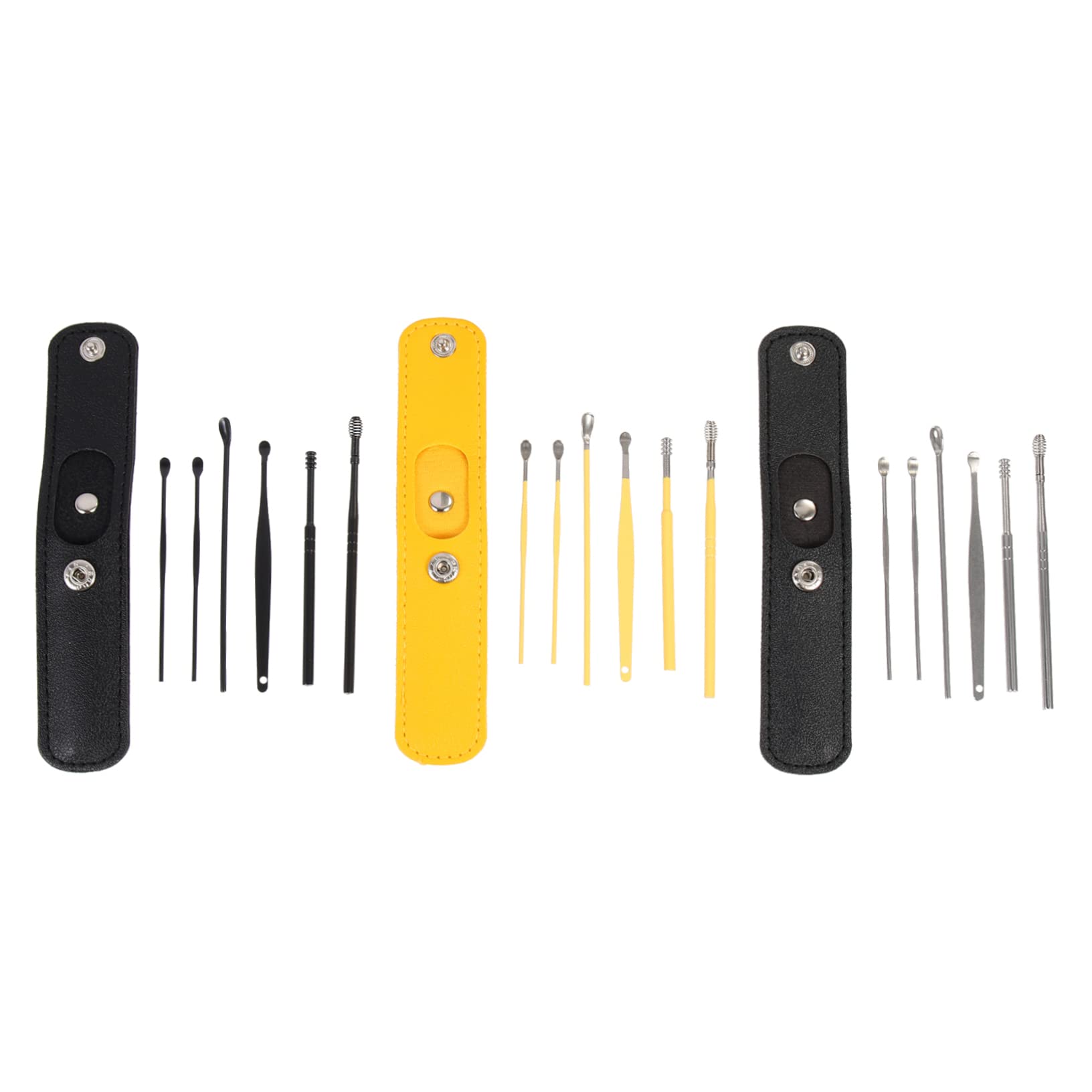 Package List 18 x Cleaning Tools 3 x Storage Pouches Characteristics -Color:Assorted -Material:Stainless Steel, PU earwax scoop -Size:9.20X0.50X0.50cm 3.62X0.20X0.20in wax cleaning -They can be used as practical and useful your colleagues, friends and family wax remover. -Avoid damaging your canal, remove earwax more thoroughly and safely, and help keep your ears healthy and clean limpiador de . -The massage head is very comfortable to dig out the earwax and does not hurt the canal . -The workmanship is fine, the surface is delicate and smooth, and they are friendly skin and ears wax removal. -With these tools for removing earwax, they can bring great convenience to daily life scraper tool. Goods Information Suitable for home, travel, etc. Each set has different tools for different cleaning purposes. wax scraper They are portable and convenient for you and your family. These earwax cleaning tools can remove accumulated earwax