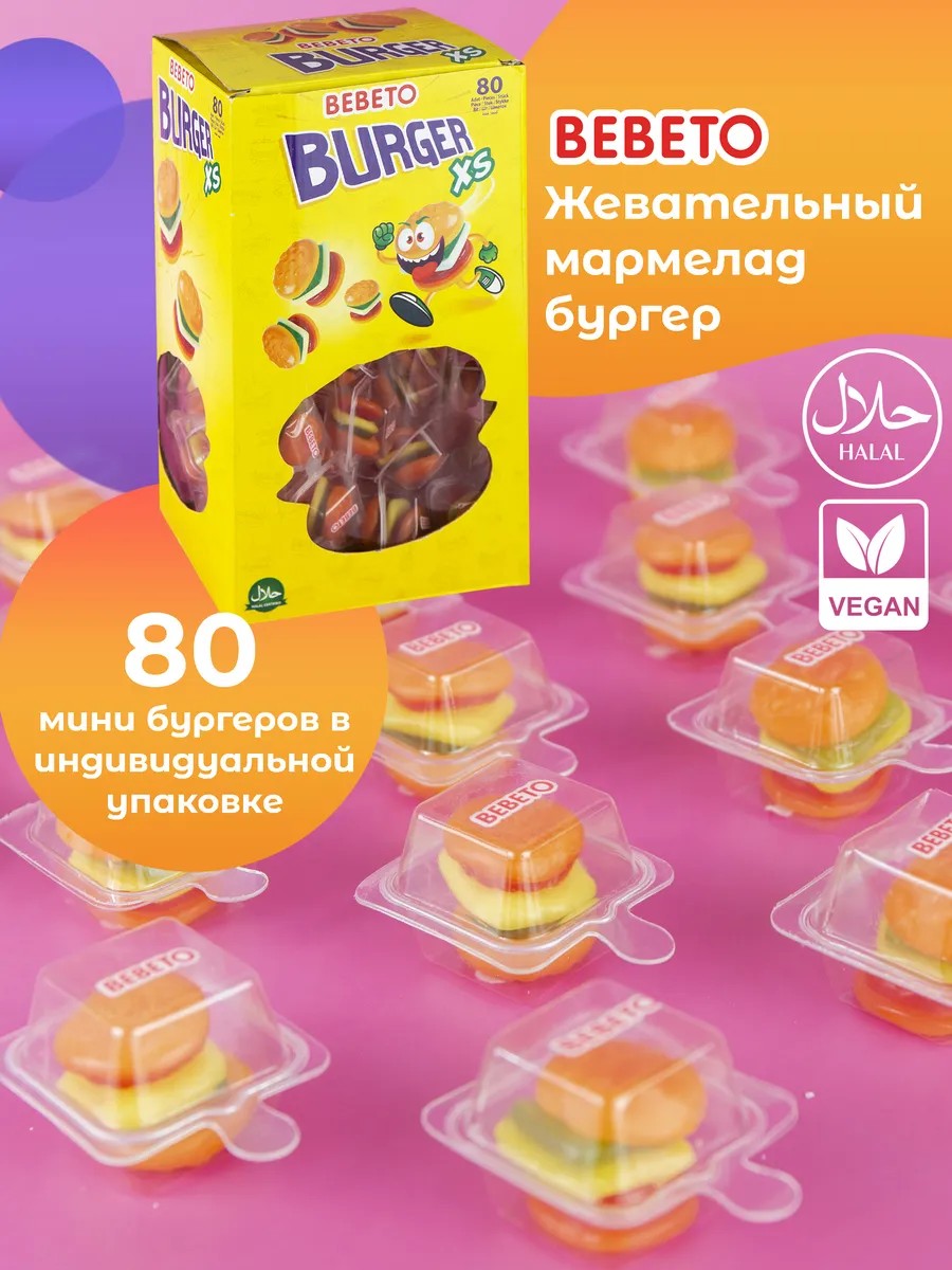 BEBETO Мармелад кислый жевательный набор 80шт Бургер