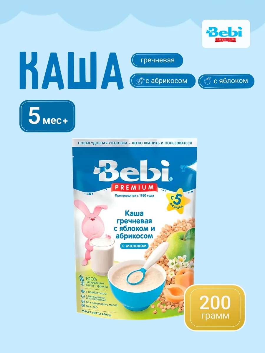 Гречневая крупа по праву признается одной из самых полезных в питании детей раннего возраста. Для изготовления детских каш используется ядрица – цельнозерновая крупа, кладезь полезных веществ. Растительный белок в ее составе содержит сбалансированный комплекс аминокислот — необходимый строительный материал для здорового роста. Сложные углеводы выступают источником энергии, очень нужной непоседе для активной деятельности. Эти вещества медленно расщепляются, обеспечивая длительное чувство сытости и хорошее настроение. Все каши Bebi Premium в новой упаковке оснащены 13 витаминами и 4 минералами – для гармоничного роста и развития малыша. Для малышей – вкусная и полезная каша, а для мам – новая упаковка, которую удобно использовать и хранить!Первые месяцы жизни важно обеспечить исключительно грудное вскармливание – как наиболее подходящее питание для младенца.питательная молочная каша для детей с 5 месяцевсодержит яблоко и абрикос для оптимального пищеваренияобогащена витаминами и минераламипребиотик инулин обеспечивает оптимальное пищеварение, стимулируя выработку полезной микрофлоры в кишечнике