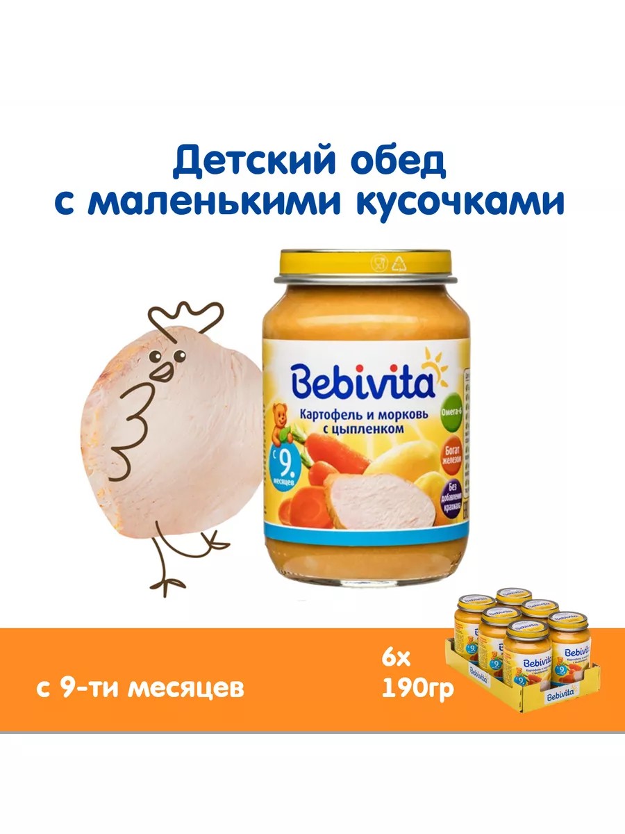 Bebivita Пюре с кусочками "Картофель с цыпленком" с 9 мес, 6x190г