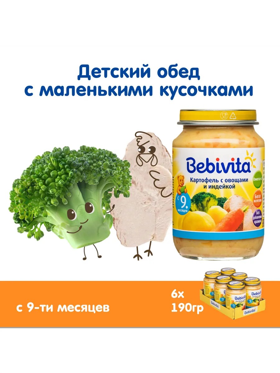 Bebivita Пюре с кусочками "Овощи с индейкой" с 9 мес, 6х190г