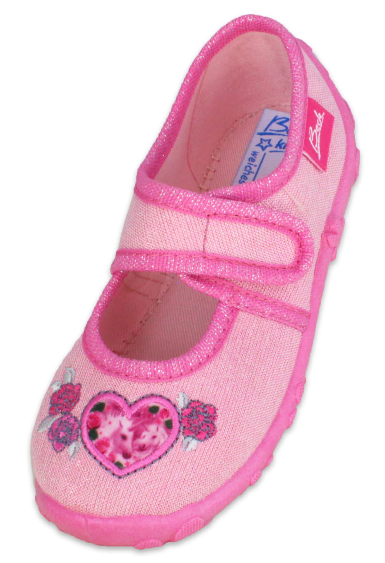 Girl -like slippers with horses motif!,Beck.Shoes.Girls' shoe with medium width in the ballerina style with durable glittering upper.Carefully embroidered and provided with a sweet horse patch.The wide -open Velcro fastener ensures easy entry and the soft footbed increases additionally in wear.Available in popular girl colors.The sole is flexible and non-marking.Ideal for kindergarten, school and of course at home.