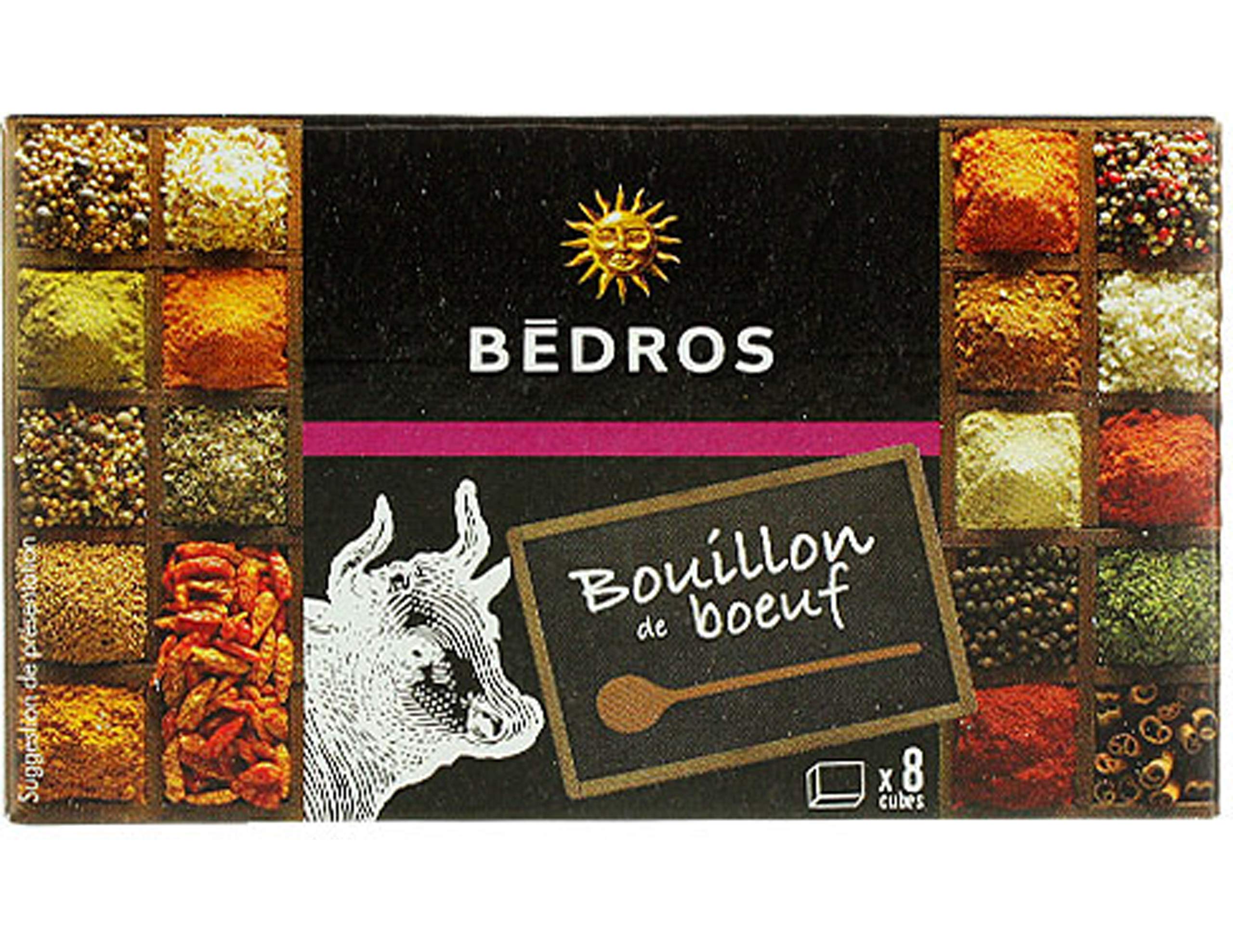 These stock cubes will be a culinary aid for your seasonings. They will be a base for your soups, sauces… Ingredients : Salt, shea butter, flavor enhancers: E621 - E 631, beef extract 2.7 , lactose, caramelized sugar, spices and aromatic herbs (celery, garlic, parsley, nutmeg), dextrose, natural celery flavor with other natural flavors, carrot. Allergens: Milk, celery. Possible traces of egg, mustard and gluten. Storage method: Store at room temperature, away from heat and humidity. Usage advice: Dissolve a cube in 500ml of simmering water. No need to add salt. Product information: - Net weight: 80g - 8 cubes Nutritional values per 100g: - Energy: 1239kJ 300Kcal - Lipids: 28g including 13g saturated fatty acids - Carbohydrates: 3.2g including sugars 3.2g - Protein: 8.9g - Salt: 54.1g Packaging : Cardboard case to recycle - individual packaging to throw away. INGREDIENTS Dehydrated beef broth, in cubes.Salt, shea butter, flavor enhancers: E621-E631, beef extract 2.7 , lactose, caramelized sugar, spices and aromatic herbs (celery, garlic, parsley, nutmeg), dextrose, natural celery flavor, natural flavors, carrot. SAFETY WARNING Full details available on the product packaging. The information on this page is for information purposes only. We encourage you to read the information on the product label, particularly regarding food allergies. Bouillon cubes with jelly base. Origin: France. Bouillon cubes with jelly base. These bouillon cubes will be a culinary aid for your seasonings. They will be a base for your soups, sauces, etc. Grocery store. Ces cubes de bouillon seront une aide culinaire pour vos assaisonnements. Ils seront une base pour vos soupes, sauces… Ingrédients : Sel, beurre de karité, exhausteurs de goût : E621 - E 631, extrait de boeuf 2,7 , lactose, sucre caramélisé, épices et herbes aromatiques (céleri, ail, persil, noix de muscade), dextrose, arôme naturel de céleri avec d'autres arôme naturels, carotte. Allergènes : Lait, céleri. Traces possibles d'oeuf, de moutarde et de gluten. Mode de conservation : A conserver à température ambiante, à l'abri de la chaleur et de l'humidité. Conseil utilisation : Délayer un cube dans 500ml d'eau frémissante. Inutile de saler. Informations produit : - Poids net : 80g - 8 cubes Valeurs nutritionnelles pour 100g : - Energie : 1239kJ 300Kcal - Lipides : 28g dont acides gras saturés 13g - Glucides : 3,2g dont sucres 3,2g - Protéines : 8,9g - Sel : 54,1g Emballage : Etui carton à recycler - emballage individuel à jeter. INGRÉDIENTS Bouillon déshydraté de boeuf, en cubes.Sel, beurre de karité, exhausteurs de goût : E621-E631, extrait de boeuf 2,7 , lactose, sucre caramélisé, épices et herbes aromatiques (céleri, ail, persil, noix de muscade), dextrose, arôme naturel de céleri, arômes naturels, carotte. AVERTISSEMENT DE SÛRETÉ Détail complet et disponible sur l'emballage du produit. Les informations présentes sur cette page sont à titre indicatif. Nous vous invitons à prendre connaissance des informations sur l'étiquette du produit, en particulier concernant les allergies alimentaires. Bouillon gelee fond. Origine : France. Bouillon gelee fond. Ces cubes de bouillont seront une aide culinaire pour vos assaisonnements. Ils seront une base pour vos soupes, sauces…. Epicerie.
