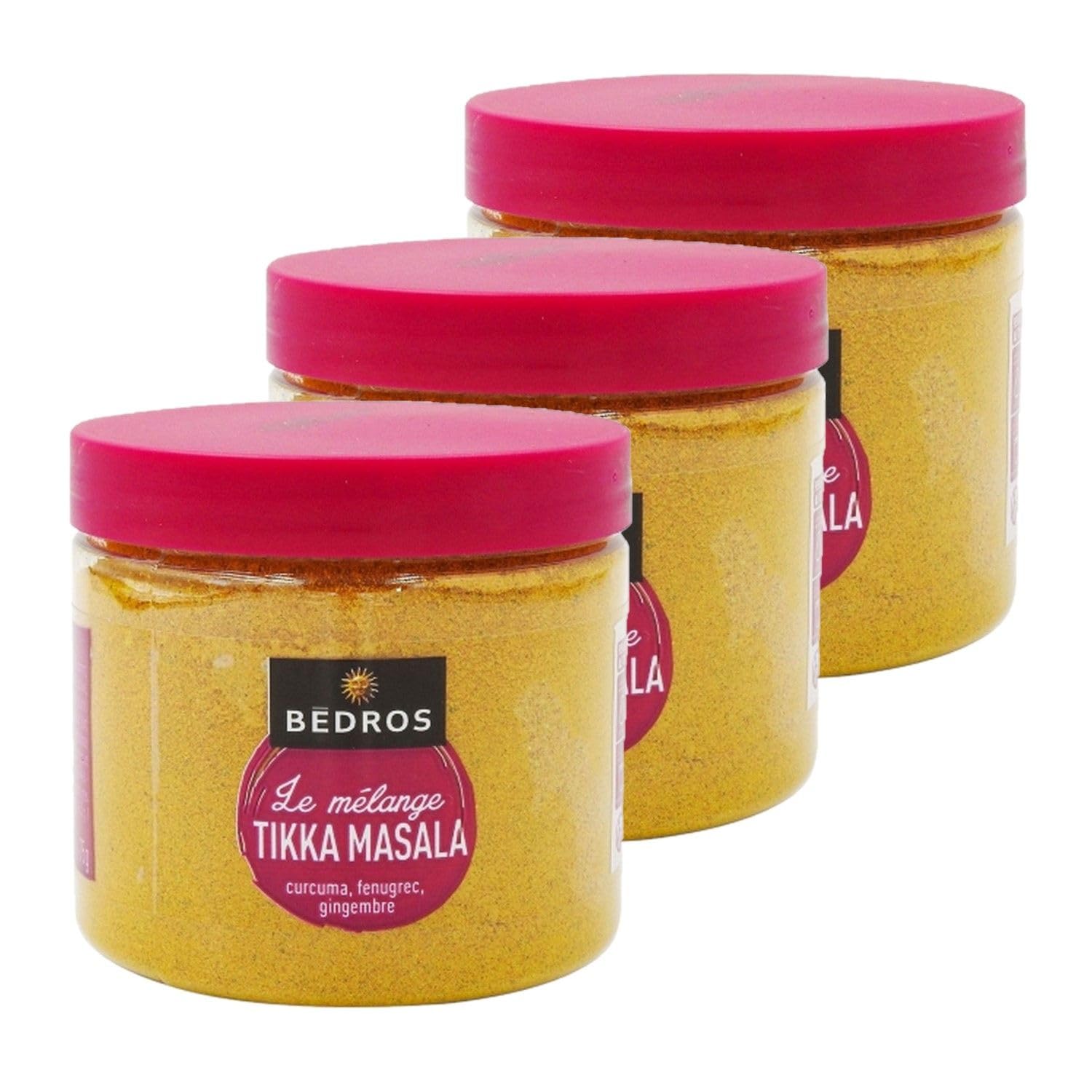 This set contains 3 products described below: Add an oriental touch to your recipes with this Bedros Indian tikka masala blend. This spice mix contains all the ingredients you need to successfully prepare traditional Indian dishes. The tikka masala gives your preparations a unique color with its subtle aromas and distinctive flavor. Ingredients: Turmeric, fenugreek, ginger, cumin, cardamom, onion, mint, cinnamon, olive oil, cloves, garlic, jalapeno pepper, bay leaf, natural flavoring. Allergens: None Storage Instructions: Store at room temperature, away from heat and humidity, before opening. Suggestions: Ideal for an original seasoning. Product Information: Net Weight: 75g Origin: France Energy: 1459kJ 349kcal Fat: 11g, of which saturates 2.6g Carbohydrate: 41g, of which sugars 8.2g Protein: 11g Dietary Fiber: Not specified Salt: 0.18g Packaging: Plastic Jar Full details available at [website address] The product packaging. The information on this page is for guidance only. We encourage you to read the information on the product label, especially regarding food allergies. SAFETY WARNING Full details are available on the product packaging. The information on this page is for guidance only. We encourage you to read the information on the product label, especially regarding food allergies.Lot 3x Mélange indien tikka massala - Pot 75gDESCRIPTION DU PRODUIT DESCRIPTION DU PRODUIT Ce lot contient 3 produits décrits ci-dessous : Apportez une couleur orientale à vos recettes avec ce mélange indien tikka massala Bedros. Ce mélange d'épices contient tous les ingrédients qui vous permettent de réussir vos plats traditionnels indiens. Le tikka massala offre à vos préparations une couleur unique avec ses arômes subtils et une saveur originale. "Ingrédients : Curcuma, fenugrec, gingembre, cumin, cardamome, oignon, menthe, cannelle, huile d'olive, girofle, ail, piment vert Jalapeno, laurier, arôme naturel. Allergènes : Aucun Mode de conservation : A conserver à température ambiante, à l'abri de la chaleur et de l'humidité avant ouverture. Conseil d'utilisation : Idéal pour un assaisonnement original. Informations produit : Poids net : 75g Origine : France Energie : 1459KJ 349Kcal Lipides : 11g dont acides gras saturés 2,6g Glucides : 41g dont sucres 8,2g Protéines : 11g Fibres alimentaires : NCg Sel : 0,18g Emballage : Pot en Plastique Détail complet et disponible sur l'emballage du produit. Les informations présentes sur cette page sont à titre indicatif. Nous vous invitons à prendre connaissance des informations sur l'étiquette du produit, en particulier concernant les allergies alimentaires. AVERTISSEMENT DE SÉCURITÉ Détail complet et disponible sur l'emballage du produit. Les informations présentes sur cette page sont à titre indicatif. Nous vous invitons à prendre connaissance des informations sur l'étiquette du produit, en particulier concernant les allergies alimentaires.