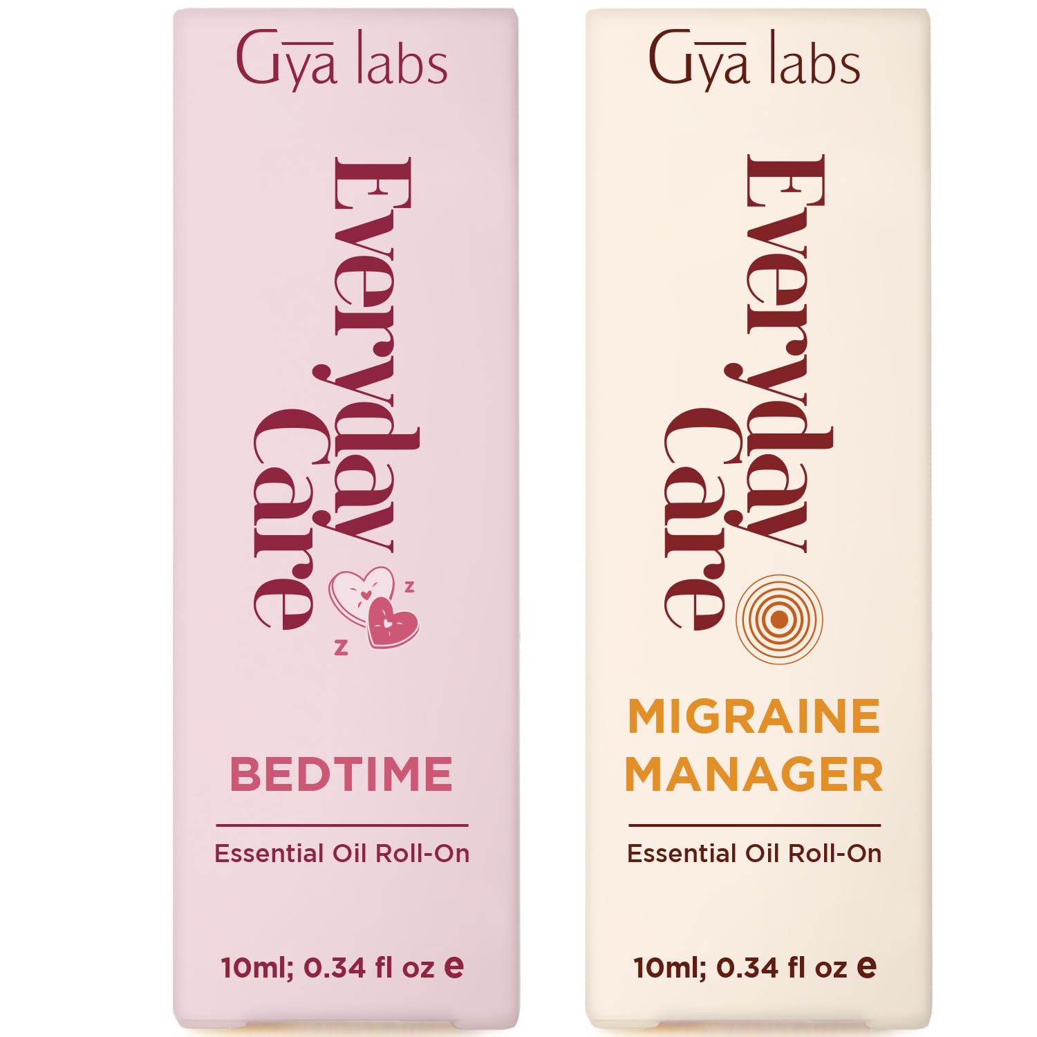 Bedtime & Migraine Manager Roll On Set - Essential Oils Aromatherapy Roll On with Essential Oil Set - 2x0.34 fl oz - Gya Labs