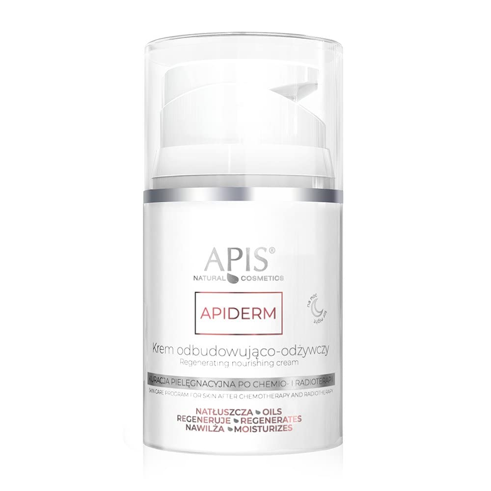 INGREDIENTS Linen, argan, coconut and sunflower oil, shea butter, squalan, extract of tara bomb, oats, linen, aloe, with vitamins A and E, D-panthenol and allantoinTip: intended for very dry skin, especially sensitive skin after radio and chemical therapy. Reduction: reduces skin dryness. Soothing: regenerates, illuminates and soothes the skin. Hydration: Nourishes, deeply hydrates, builds and effectively degreases the skin. Rich formula: light, fragrance- and dye-free consistency of the night cream with linen, argan, coconut and sunflower oils, shea butter, squalane, extract of tara tree, oats, linen, aloe, with vitamins A and E, D-panthenol and allantoin.APIS Apderm Opbouwende gezichtscrème voor de nacht met extract van tarafzoom, haver, linnen, aloë, met vitamine A en E, D-panthenol en allantoïne, voeding, verlichting en regeneratie, 50 ml INGREDIËNTEN Linnen, argan-, kokos- en zonnebloemolie, sheaboter, squalan, extract van tarabom, haver, linnen, aloë, met vitamine A en E, D-panthenol en allantoïneTip: bestemd voor zeer droge huid, vooral gevoelige huid na radio- en chemische therapie. Reducering: vermindert droogheid van de huid. Kalmering: regenereert, verlicht en kalmeert de huid. Hydratie: voedt, hydrateert diep, bouwt op en maakt effectief de huid vettig. Rijke formule: lichte, geur- en kleurstofvrije consistentie van de nachtcrème met linnen, argan-, kokos- en zonnebloemolie, sheaboter, squalaan, extract van taraboom, haver, linnen, aloë, met vitamine A en E, D-panthenol en allantoïne.