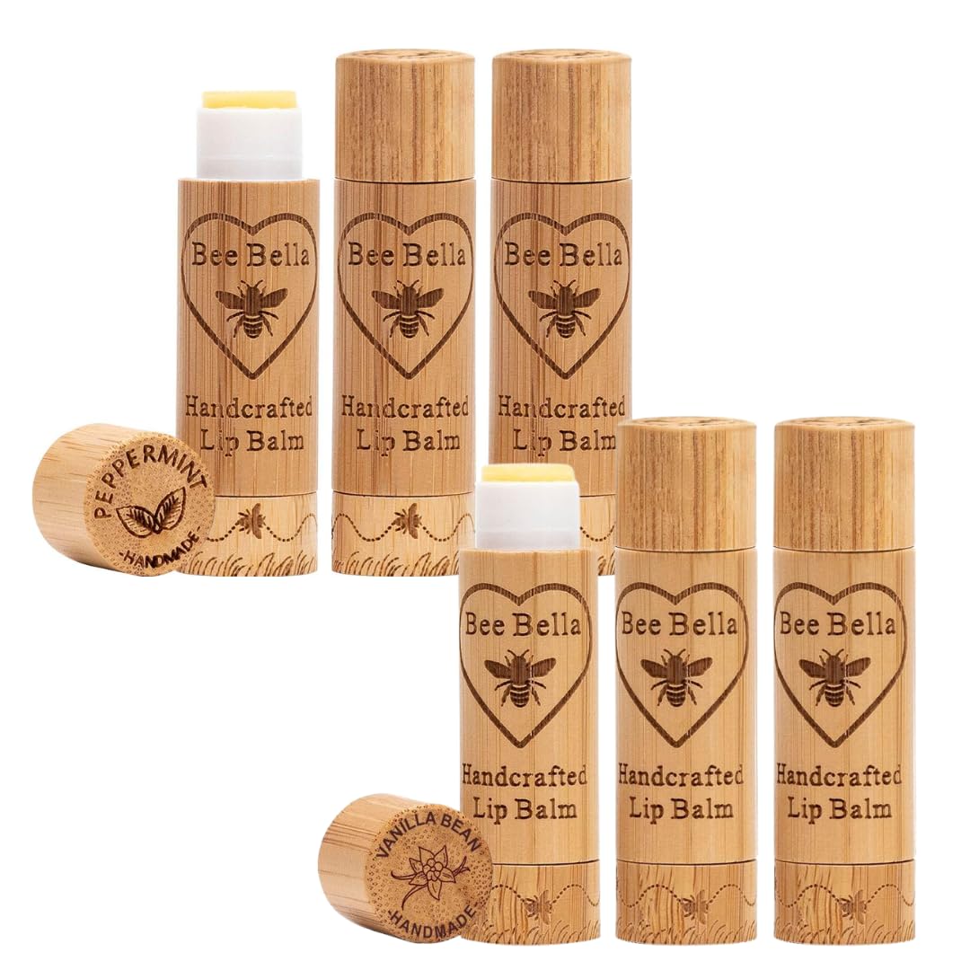 Handcrafted by the Beekeepers. Bee Bella isn't your average lip balm company. Since its start, Bee Bella has made an enormous effort to be socially and environmentally conscious. We source organic ingredients, provide funding to honey bee research, support U.S. Manufacturing, guarantee that our products are never tested on animals, and ensure that farmers around the world are treated fairly and work in humane conditions. Each lip balm is also hand poured and crafted by the beekeepers themselves. The Buzz on Bee Bella With Bee Bella premium lip balms, you can enjoy deep moisturization and a complex aroma profile with every application. Each carved bamboo tube contains ethically sourced organic ingredients of superior quality and almost 50 more product than the average lip balm on the market. No wonder it's been getting a lot of buzz! A Whole Lot More Than the Average Lip Balm. Premium Organic Ingredients! Our lip balms are made with a pure blend of high-quality organic ingredients, including organic beeswax, cocoa butter and coconut oil, jojoba oil, and argan oil. As our natural binder and preservative, we use rosemary extract and D-limonene. Long-Lasting Moisture. Start each day by giving your lips a whole lot of love. Each silky-smooth application leaves your lips with up to 8 hours of deep moisturization and protection. With five fun flavors to choose from, Bee Bella is lip therapy encased in a clever bamboo tube! Do Good for the Planet Bee Bella isn't just good for your lips it's made to help build a better world. Our lip balms are locally sourced and handcrafted, and a portion of our income goes straight to honey bee research. We also use Fair Trade ingredients to support the communities behind them, and we adopt the Leaping Bunny Standard, which means we are a 100 no animal testing company.100 SATISFACTION GUARANTEE: Our lip balms are carefully handcrafted for your complete satisfaction, but if you have any concerns about your order, please feel free to let us know right away so we can make things right. HANDCRAFTED BY THE BEEKEEPERS: Bee Bella lip balms are hand poured and crafted by the very experts who work with the bees, harvest the honey, and melt down the wax with each purchase, you also help fund honey bee research!. SILKY SMOOTH TEXTURE, LONG-LASTING MOISTURE: Just one smooth, easy glide application will leave your lips with up to 8 hours of deep moisturization, thanks to its rich blend of responsibly sourced beeswax, coconut oil, jojoba oil, argan oil and cocoa butter. YOU DESERVE PREMIUM QUALITY LIP CARE: We spared no expense to use the most high-quality organic ingredients possible for Bee Bella lip balms, which contain almost 50 more product per carved bamboo tube than the usual ones you can find on the market. Made in the USA. LUXURIOUS FLAVORS OF VANILLA BEAN PEPPERMINT : Replenish your lips natural moisture with Bee Bella's all-natural flavor. Handcrafted with the highest quality ingredients to create a spa like treatment for your lips. Great holiday gift or stocking stuffer!.