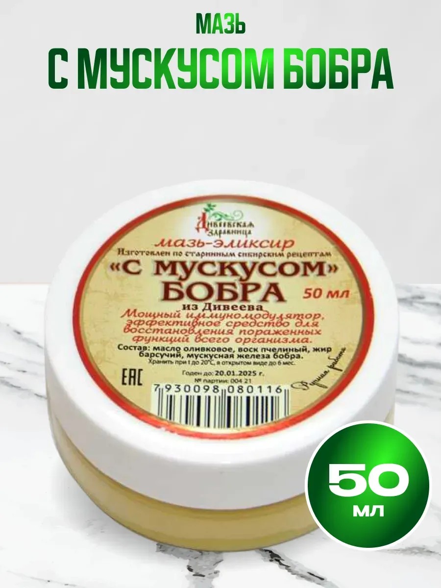Beaver Musk Elixir Ointment, Diveyevskaya Zdravnitsa, 50 ml. Ingredients: Beaver musk gland extract, badger fat, olive oil, beeswax. Beaver musk gland is a thick aromatic substance produced by the beaver's paired glands, used during times of famine. Beaver musk gland has been used for thousands of years in Rus' and Europe for its powerful therapeutic, preventative, restorative, tonic, and reproductive properties. In ancient times, it was considered a universal remedy for all ailments and was worth its weight in gold. It is a powerful natural stimulant, energy tonic, and immunomodulator, with high healing potential. The chemical composition of beaver musk includes more than 60 valuable biocomponents, which help with over 100 diseases. The musk gland is rich in substances that significantly boost immunity, allowing our body to find strength and energy to fight any ailment. Using the balm has a positive effect on the nervous system, improves mood, promotes peace, promotes tissue rejuvenation, and increases defenses and physical endurance. Musk has immune-restoring, strengthening, tonic, rejuvenating, anti-inflammatory, bactericidal, antiseptic, antitoxic, antiviral, and resorptive properties. Beaver musk gland ointment combined with badger fat provides quick relief: - for improving the condition of bronchopulmonary diseases, tuberculosis, pneumonia, mucositis, tonsillitis, and stomach ulcers. - for damaged skin, wounds, purulent inflammation, dermatitis, eczema, burns, frostbite, antiviral infections. - to eliminate varicose veins and "spider veins" on the legs, strengthen the walls of blood vessels, against the formation of blood clots. - for the treatment of gynecological, oncological diseases, prostatitis, rapid resorption of tumors and hematomas. - for vitamin deficiency, malaise, fatigue, loss of strength, to maintain performance, quickly eliminate depression. - To normalize metabolism, remove toxins from the body, prevent the destruction of nerve fibers, with rheumatism and joint disease. Application: With light, circular movements, the ointment-elixir is rubbed into problem areas 3-4 times a day for 3 minutes (it is possible to wrap it up at night). Can be taken orally, 1/4 teaspoon daily before meals. Contraindications: allergies, intolerance to the ingredients.