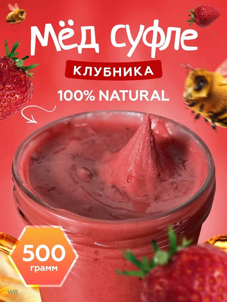 Мед натуральный цветочный/крем суфле с клубникой без сахара/полезные продукты сладости для ПП иммунитета.Всем прекрасно известно о пользе меда для здоровья. Если же этот медовый экопродукт обогащается клубникой, то это уже настоящий кладезь витаминов. Сладкий мед способствует очищению организма и укреплению иммунитета. Он выпускается в удобной баночке из стекла объемом 500 мл. Живой мед в подарочной упаковке непременно порадует женщин и мужчин, детей. Полезные вкусняшки можно преподнести на праздник и вовсе без повода мужу, папе, брату, любимой девушке, бабушке, маме. Свежий сладкий мед, собранный из цветов, идеально дополнит правильное, здоровое питание и принесет пользу всей семье. Его можно употреблять с чаем, добавлять в выпечку, десерты. Вкусный пчелиный эко продукт допускается включать в рацион при соблюдении диеты. В стеклянной банке собрано все самое лучшее, что дарит нам природа. Натуральный мед станет идеальной заменой вредных сладостей и сахара, он такой же вкусный и полезный, как каштановый. В нашем магазине Вы найдете отличные подарки на любой повод и праздник: день рождения близких людей - для жены, мужа, брата, сестры, папе. 14 февраля любимой девушке, женщине. 23 февраля мужчине. На 8 марта. На новый год для взрослых, юношей, детей. На выпускной другу, подруге. На день матери. Также имеются семейные товары: маме, отцу, для ребенка, для сына, дочке. Вы сможете дополнить как основной подарок, так и создать вкусный и полезный, оригинальный подарочный набор, зож бокс или комплект из представленных товаров, преподнеся его в красивой упаковке. На странице нашего магазина всегда можно найти распродажи, акции и скидки.