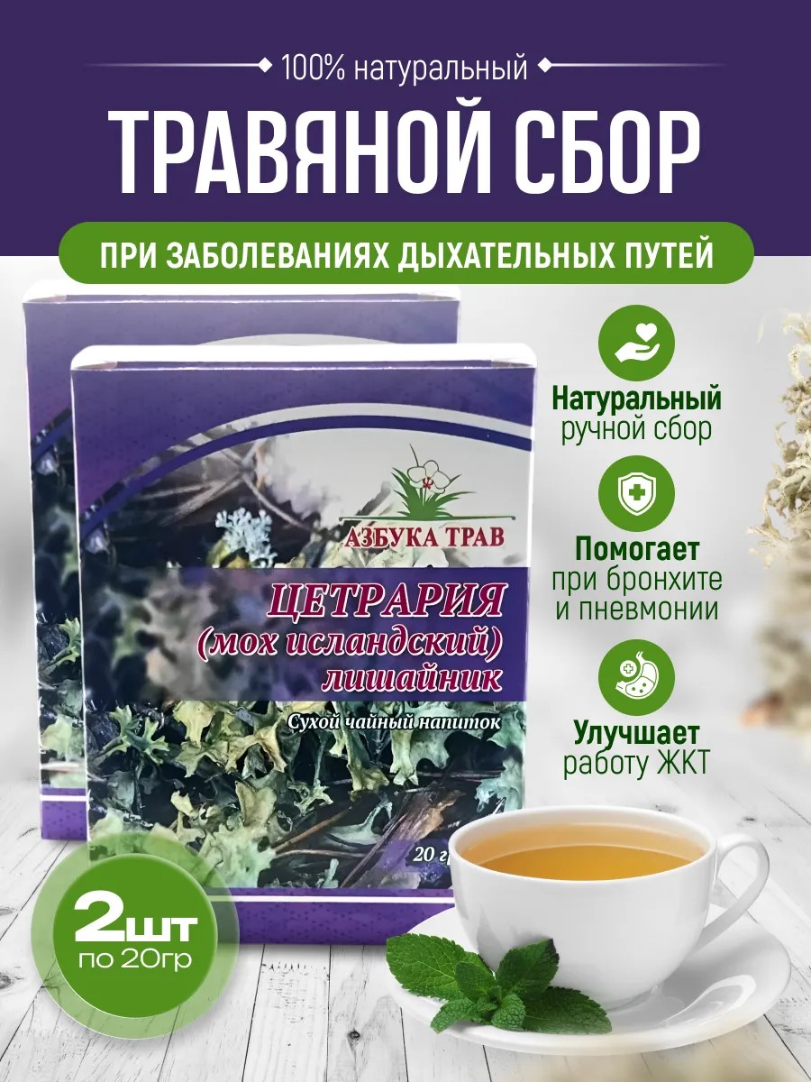 Действие: cлизистые вещества цетрарии действуют обволакивающе на слизистую верхних дыхательных путей, поэтому применяются при бронхите с сильным кашлем, бронхиальной астме, коклюше, хроническом бронхиальном катаре.