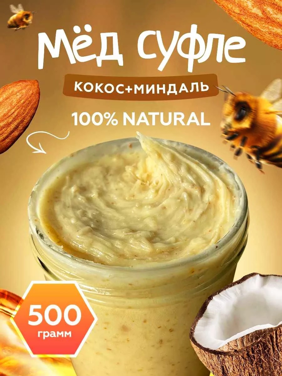 Мед натуральный цветочный/крем суфле с кокосом и миндалем без сахара/полезные продукты сладости для ПП иммунитета.Всем прекрасно известно о пользе меда для здоровья. Если же этот медовый экопродукт обогащается кокосом и миндалем, то это уже настоящий кладезь витаминов. Сладкий мед способствует очищению организма и укреплению иммунитета. Он выпускается в удобной баночке из стекла объемом 500 гр. Живой мед в подарочной упаковке непременно порадует женщин и мужчин, детей. Полезные вкусняшки можно преподнести на праздник и вовсе без повода мужу, папе, брату, любимой девушке, бабушке, маме. Свежий сладкий мед, собранный из цветов, идеально дополнит правильное, здоровое питание и принесет пользу всей семье. Его можно употреблять с чаем, добавлять в выпечку, десерты. Вкусный пчелиный эко продукт допускается включать в рацион при соблюдении диеты. В стеклянной банке собрано все самое лучшее, что дарит нам природа. Натуральный мед станет идеальной заменой вредных сладостей и сахара, он такой же вкусный и полезный, как каштановый. У нас есть акции и распродажи, вы можете купить наши товары в подарок со скидкой! Замечательный новогодний подарок для себя и близких!