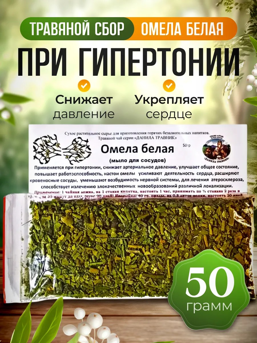 Применяется при гипертонии, снижает артериальное давление, улучшает общее состояние, повышает работоспособность, настои омелы усиливают деятельность сердца, расширяют кровеносные сосуды, уменьшают возбудимость нервной системы, для лечения атеросклероза, способствует излечению злокачественных новообразований различной локализации. Применение. Водный: 1 чайная ложка на 1 стакан кипятка, настоять 1 час, принимать по ¼ стакана 2 раза в день, за 30 минут до еды. Курс 20 дней Спиртовой:40 грамм омелы на 0.5 литра водки, настоять 20 дней. Пить по 20-30 капель 2 раза в день, за 30 минут до еды.