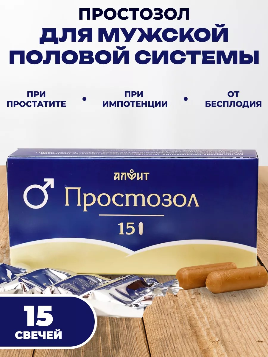 Prostozol suppositories are natural-based suppositories, an anti-inflammatory agent for topical use. The ingredients are used in the complex treatment of impotence, erectile dysfunction, and male infertility. They have a tropic effect on the prostate gland and are used for inflammation (prostatitis). Red root is an Altai plant that strengthens the immune system and helps normalize decreased male potency. It helps prevent structural changes in the prostate gland. Thanks to their antispasmodic effect, herbal suppositories relax the prostate muscles, improve blood flow, and prevent stagnation of prostate secretions. Using herbal suppositories eliminates spasms, reduces diuretic symptoms, increases sexual activity, restores male sexual function, and improves emotional well-being. INGREDIENTS: Wintergreen, red root (tea hedysarum), Leuzea carthamoides, burdock, natural cocoa butter, purified natural wax, refined edible fat, emulsifier. Used as rectal suppositories, suppositories for potency, for erection, phyto-suppositories, for men's health, non-glycerin, increasing potency, improving health, to increase potency, increasing testosterone, for prostatitis for men, vitamins for men for potency, for libido, intimate suppositories. INDICATIONS: prostatitis, prostate adenoma, decreased erection, impotence, short sexual intercourse, problems with urination, male infertility, spasms, a feeling of heaviness and other unpleasant sensations in the pelvic area. RELEASE FORM 15 pcs. of 2 g.