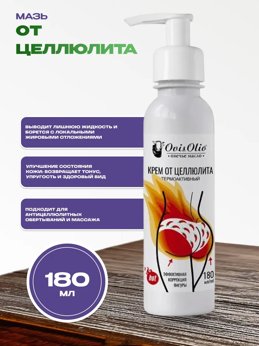 Anti-cellulite cream from Ovis Olio is specially designed for anti-cellulite wraps and massage. It accelerates the burning of localized fat deposits by removing excess intracellular fluid.