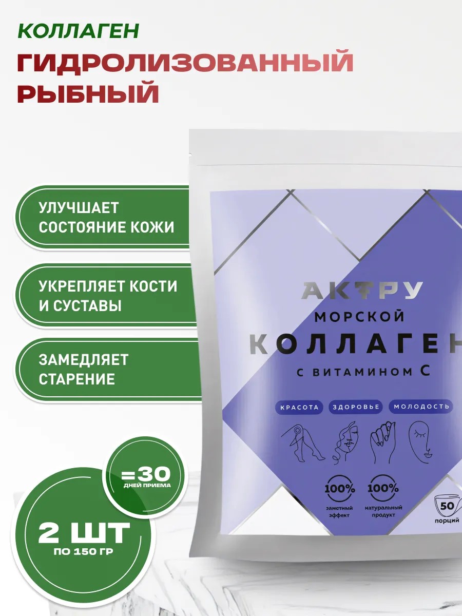 Гидролизованный рыбный коллаген, разобранный на цепочки пептидов - качественный источник аминокислот для питания организма.