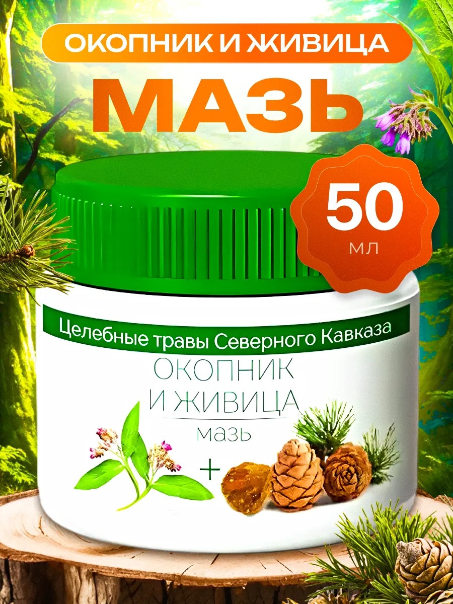 A magnificent combination of plants with a powerful healing effect. They relieve inflammation, heal wounds and ulcers, and remove salt deposits. The ointment has regenerative, bactericidal, anti-inflammatory, bone-healing, and antitumor properties, and halts tissue necrosis. Natural cedar resin has a unique ability to heal wounds, suppurations, fistulas, trophic ulcers, and gangrene. The resin's rich chemical composition determines its powerful bactericidal, antiseptic, anesthetic, adsorbent, and healing properties. Ointment with comfrey and resin is used for: osteochondrosis, rheumatism; polyarthritis, arthritis, arthrosis, gout; dislocations and fractures; osteomyelitis, bone tuberculosis; bruises, wounds, abrasions, ulcers, fistulas; malignant bone neoplasms (bone metastases). Ingredients: High-quality palm oil, cedar resin, eucalyptus oil, chamomile extract, glycerin, lanolin. Directions: Apply a thin layer of ointment to the affected area 2-4 times daily. The course of treatment is at least 1 month, then a month break or use a different ointment. Contraindications: Individual intolerance to the components of the ointment with comfrey and resin, pregnancy. Storage conditions: Store at a temperature of 0° to +15° and a relative humidity of 85%. The ointment has an 18-month shelf life. In our store, you'll find excellent gifts for any occasion and holiday: birthdays of loved ones - for your wife, husband, brother, sister, or dad; February 14th for your girlfriend or woman; February 23rd for a man; March 8th; New Year's for adults, boys, and children; graduation for a friend; and Mother's Day. We also have family-friendly products: for mom, dad, for a child, for a son, or for a daughter. You can complement the main gift or create a delicious and healthy, original gift set, a healthy lifestyle box, or a set of the products presented, presented in beautiful packaging. You can always find sales, promotions, and discounts on our store page.