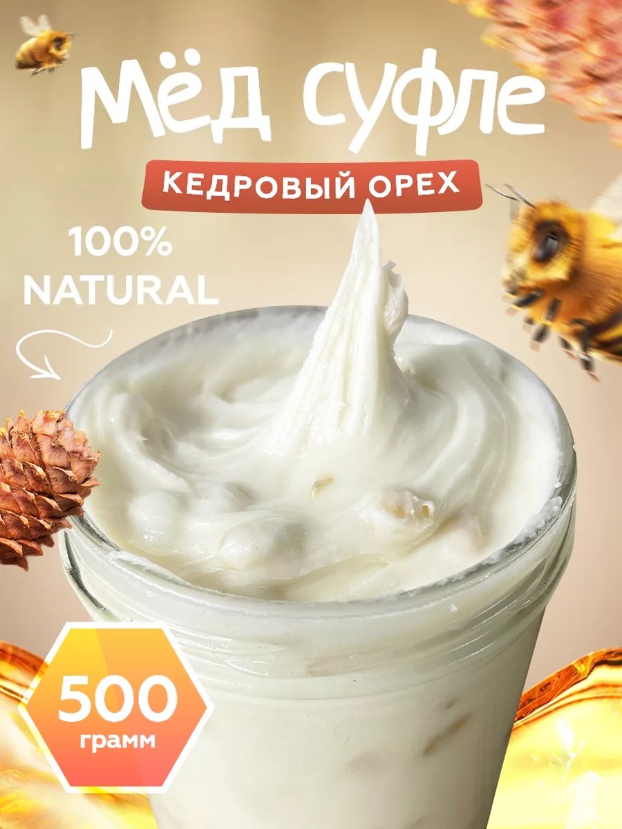 Мед натуральный цветочный/крем суфле с кедровыми орешками без сахара/полезные продукты сладости для ПП иммунитета. Всем прекрасно известно о пользе меда для здоровья. Если же этот кремовый медовый экопродукт обогащается кедровыми орешками, то это уже настоящий кладезь витаминов. Сладкий мед способствует очищению организма и укреплению иммунитета. Он выпускается в удобной баночке из стекла объемом 500 мл. Живой мед непременно порадует женщин и мужчин, детей. Полезные вкусняшки можно преподнести на праздник и вовсе без повода мужу, папе, брату, любимой девушке, бабушке, маме. Свежий сладкий мед, собранный из цветов, идеально дополнит правильное, здоровое питание и принесет пользу всей семье. Его можно употреблять с чаем, добавлять в выпечку, десерты. Вкусный пчелиный эко продукт допускается включать в рацион при соблюдении диеты. В стеклянной банке собрано все самое лучшее, что дарит нам природа. Натуральный мед станет идеальной заменой вредных сладостей и сахара, он такой же вкусный и полезный, как каштановый. У нас есть акции и распродажи, вы можете купить наши товары в подарок со скидкой! Замечательный новогодний подарок для себя и близких!
