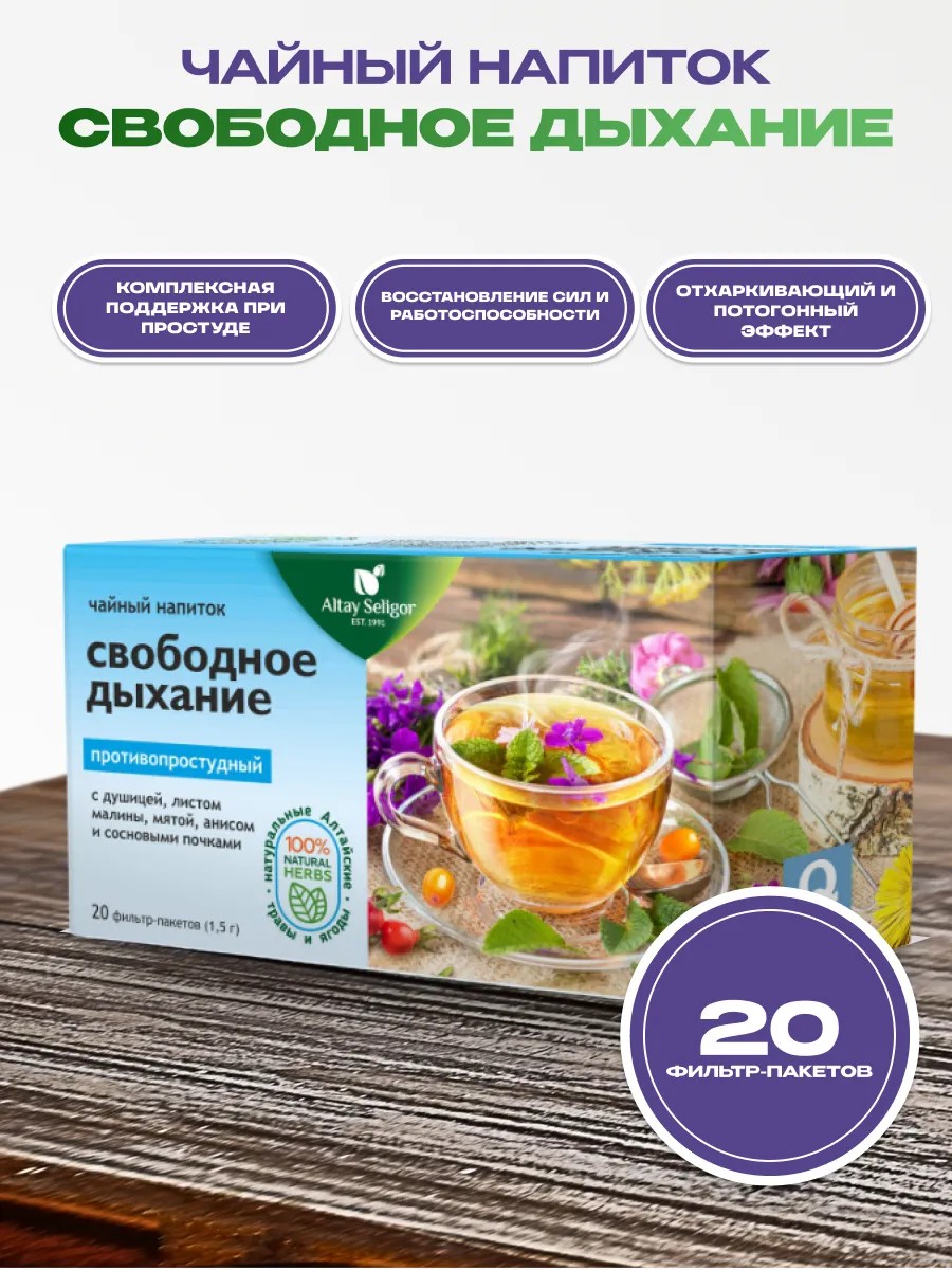 Напиток "Свободное дыхание" станет вашим верным помощником в период простуд и аллергий. Наслаждайтесь его вкусом и заботьтесь о своем здоровье с помощью природных компонентов!