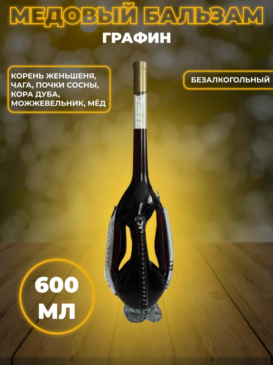 The non-alcoholic Grafin balm is a versatile and effective way to improve your health. Its complex of active ingredients improves blood formation and memory, positively impacts metabolism and cardiovascular function, and helps combat internal diseases and fatigue. This herbal drink contains many beneficial vitamins essential for the body. It improves blood composition, has an antimicrobial effect, and normalizes gastrointestinal function. This natural Altai tincture, made from a blend of herbs, has a pleasant, tart flavor. Due to the tannins, the syrup is quite viscous. The balm stimulates the immune system, invigorates, increases productivity, and helps relieve colds. It is also used for cancer prevention. This delicious vitamin-rich product is used for inflammatory diseases of the oral mucosa and skin lesions. It stops bleeding, enhances sexual potency, and promotes hair growth. This healthy diet helps prolong a man's longevity by stimulating cell regeneration and activating the body's defenses. The product is sold in a beautiful glass bottle, making it a perfect gift for any occasion: birthday, New Year's, February 23rd, anniversary, or special occasion. This symbol of the year is a great gift for a grown man: dad, beloved brother, boyfriend, husband, best friend, grandfather, colleague, or homeroom teacher. Delight your family and give him this cool gift for a real man. A wonderful New Year's surprise for yourself and your loved ones!