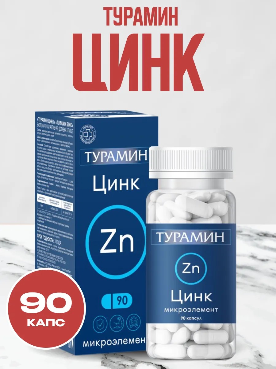 Турамин Цинк — эффективные капсулы с цитратом цинка для поддержания здоровья мужчин и женщин. Каждая таблетка содержит 12,5 мг цинка, способствующего укреплению иммунитета, улучшению состояния кожи, волос и ногтей, а также ускорению восстановления мышц. Этот микроэлемент важен для синтеза коллагена, здоровья зубов, роста тканей и регуляции обмена веществ. Цинк повышает активность Т-лимфоцитов, снижая риск инфекций, поддерживает мужское репродуктивное здоровье, участвуя в выработке тестостерона, и помогает при акне, регулируя работу сальных желез. Добавка рекомендована при физических и умственных нагрузках, стрессе и в сезон простуд. Всего 1 капсула в день и средство обеспечит организм необходимыми витаминами и минералами для долгосрочного здоровья.