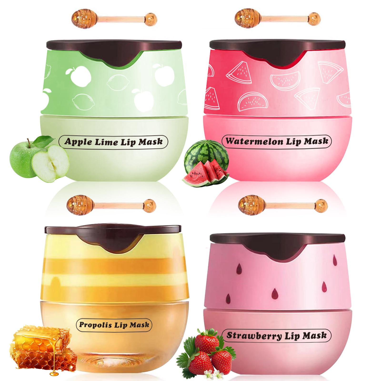 Bee Lip Balm Honey Pot 4pcs Propolis Lip Mask Overnight Moisturizing Fruity Lip Balm with Stick Hydrating Prevention Dry and Cracked Lip Scrubs Exfoliator Lip Care