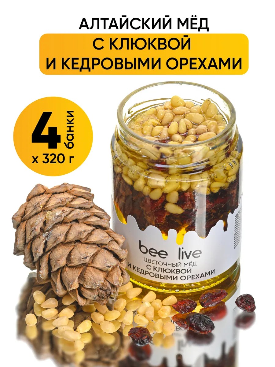 Bee live Алтайский мед с кедровым орехом и клюквой 4 шт