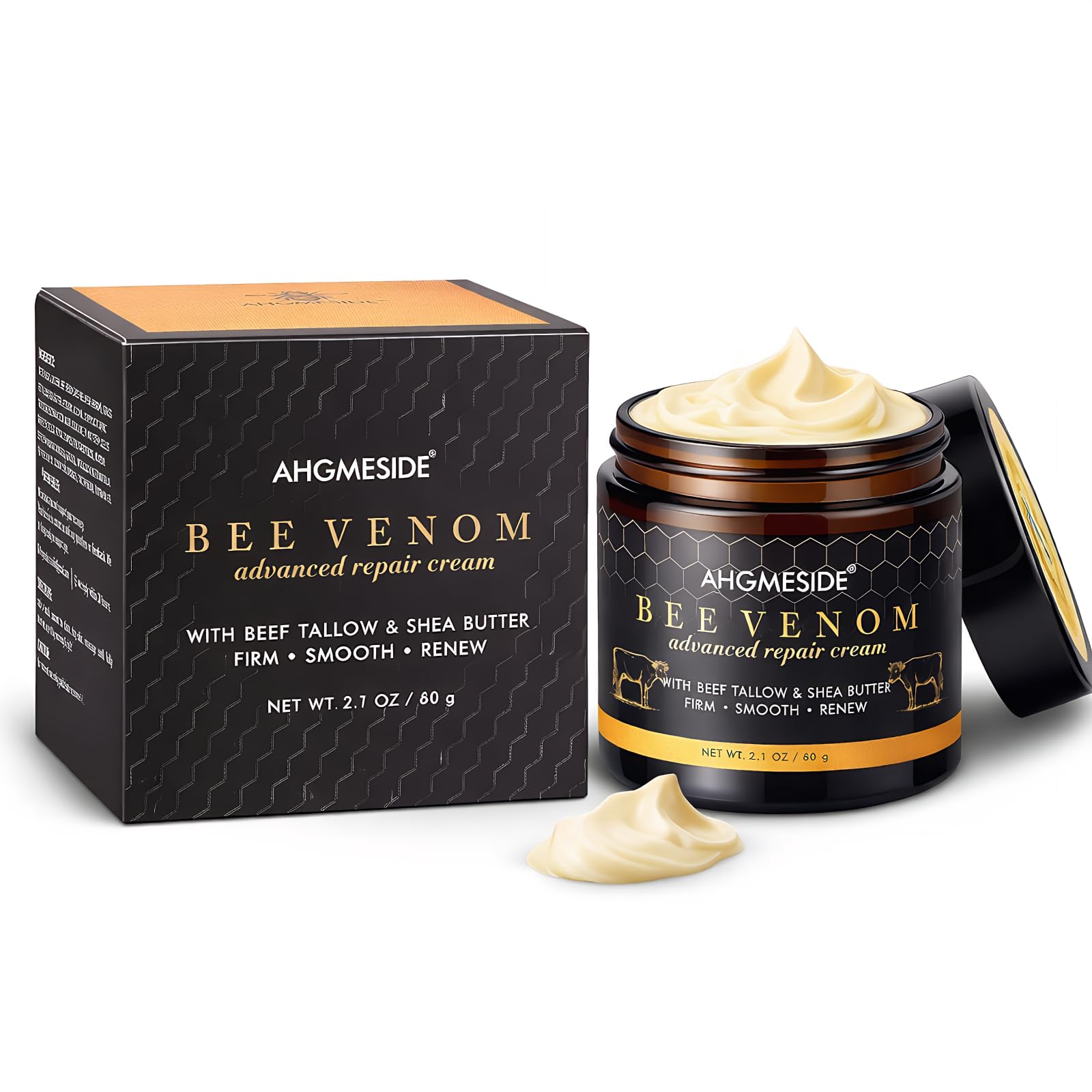 GENTLE DAILY MOISTURIZER FOR FACE NECK: Clean, gentle, and suitable for daily use. Designed for face, neck, and targeted dry areas—ideal for customers seeking bee venom skin care, daily repair creams, and naturally inspired firming moisturizers. LIGHTWEIGHT NOURISHMENT FOR SMOOTHER-LOOKING SKIN: A restorative blend of Squalane, Hyaluronic Acid, Jojoba Esters, and Vitamin E delivers lightweight nourishment, helping skin feel smoother, firmer-looking, and naturally radiant—without clogging pores. LONG-LASTING HYDRATION WITH SHEA BUTTER :Shea Butter helps lock in moisture and maintain balanced hydration throughout the day, leaving skin feeling soft, comfortable, and naturally supple—without a sticky finish. BEEF TALLOW–INFUSED, NON-GREASY MOISTURE: Made with premium grass-fed Beef Tallow to support the skin's natural moisture barrier. Rich yet lightweight, this formula absorbs smoothly without feeling heavy—perfect for shoppers exploring beef tallow for skin care. BEE VENOM SKIN REPAIR TREATMENT CREAM: Formulated with purified Bee Venom to support skin renewal and help improve the look of dull, tired-looking skin. Ideal for customers searching for bee venom skin cream, skin repair moisturizers, and daily nourishing face creams.