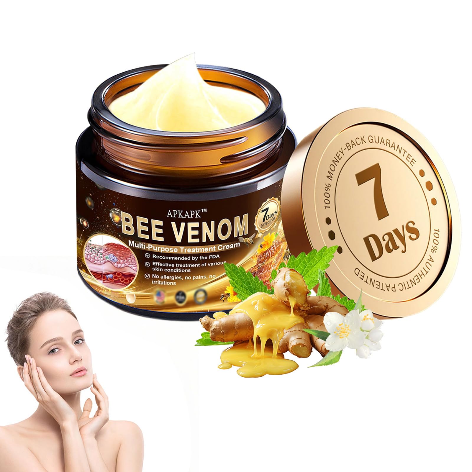 Bee Venom Multi-Purpose Skin Treatment Cream,effectively reduces the appearance of scars, fine lines and other blemishes, helps tighten and restore skin elasticity, nourishes, moisturizes and plumps the skin for healthier, fuller-looking skin, while also improving skin elasticity for a firmer, more youthful-looking appearance.