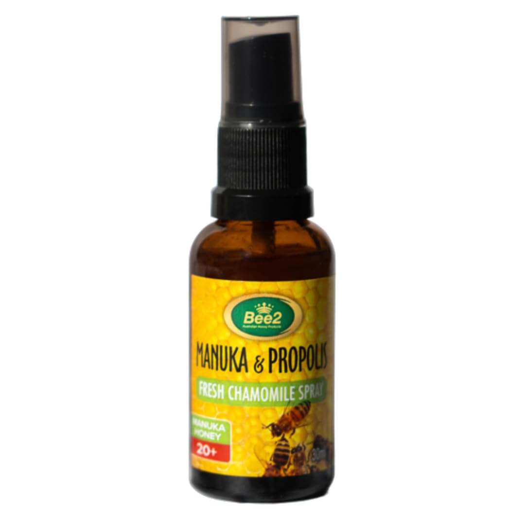 USAGE: Adults and children over 5 years: Spray 2-6 pumps into the mouth or on the back of the throat as often as required. INGREDIENTS: Glycerin, Aqua (water), Mel (Certified MGO20 Manuka Honey), Propolis Extract, Mentha piperita (Peppermint) oil, Menthol, Siraita Grosvenorii Powder, Chamomile Oil (Roman). PURITY and SOURCE: Once collected, our raw Propolis and Manuka Honey are tested rigirously to maintain high quality standards and ensure purity and potency. PROPOLIS IS THE DEFENDER OF THE HIVE. Bees use it to line the walls and keep germs out. We use propolis to support our immune systems, soothe dry, scratchy throats, combat free radical damage in the body, and feed the good bacteria in our gut.