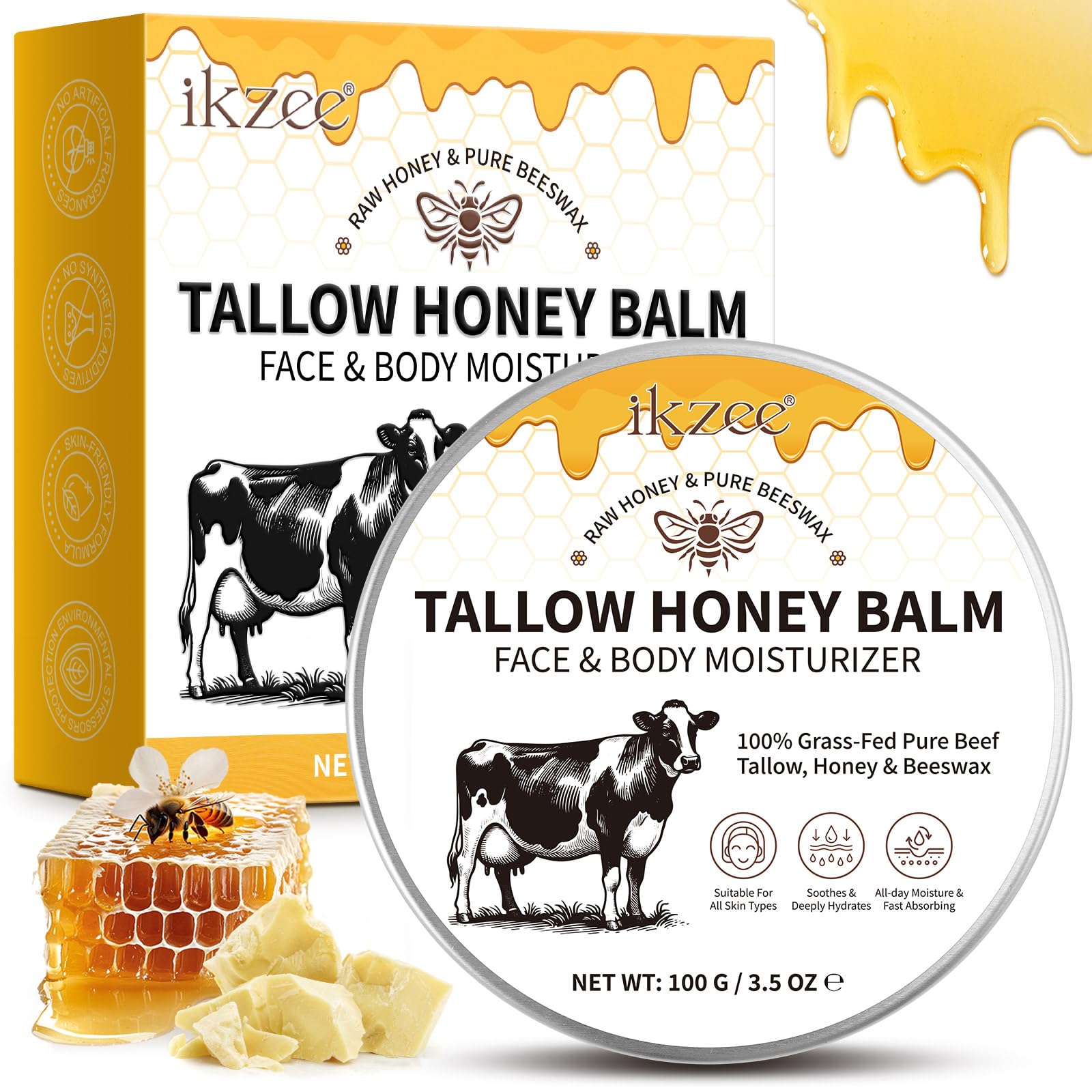 Beef Tallow for Skin 100g, Beef Tallow and Honey Balm 100 Grass-fed- Crème hydratante pour le visage et le corps Peau sèche et vieillissante