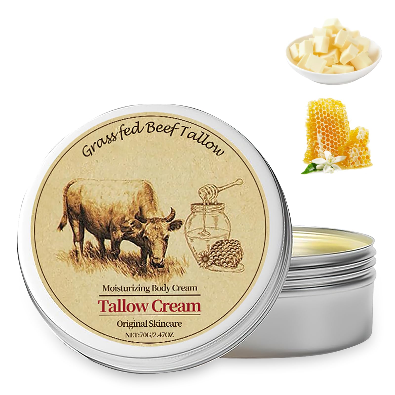 Responsible After-sale Service Our grass-fed tallow skin moisturizer contains no harmful ingredients. WL is committed to providing you with high quality products and quality assurance. If you have any questions about WL tallow cream, please feel free to contact us at any time. We will provide you with the most helpful answers within 24 hours. Scope Of Application Our grass-fed beef tallow for skin moisturizer can be applied to various parts of the body, including the face, hands, feet, elbows, and knees, to provide all-around hydration and moisturization for the whole body skin. If you use our tallow balm, you can see obvious improvement effect. Of course, our tallow moisturizer is suitable for men and women of all ages, including sensitive skin. It is a versatile skin care solution for the whole family. Versatile Usage Our product is based in tallow, a natural ingredient that closely mimics the structure of your skin's natural barrier. Tallow moisturizer is an essential part of any skincare routine and can be used to meet a variety of skincare needs. It works great on eczema, diaper rash, psoriasis, acne, cracked, dry or sensitive skin. Helps soothe and calm irritated skin. Gentle formula, suitable for all skin types. Continuous use improves skin health. Strengthens Moisture Barrier Our grass-fed beef tallow for skin moisturizer deeply nourishes and hydrates the skin, providing long-lasting moisture to fight dryness and roughness. This tallow balm provides a soothing, non-irritating experience, making it suitable for sensitive skin. When applied topically, it deeply moisturizes and nourishes your skin, locks in moisture, improves skin texture, and makes skin soft and elastic. Multi-Premium Ingredients Our 100 natural beef tallow cream is rich in skin care ingredients such as grass-fed beef tallow, honey, and vitamin E, which nourishes your skin better than any chemical cocktail on the market. Use this cream as a face moisturizer, body lotion, or lip balm. Rich beef fat texture, easy to absorb, non-greasy, suitable for daily use.Skin feels refreshed and comfortable after use.