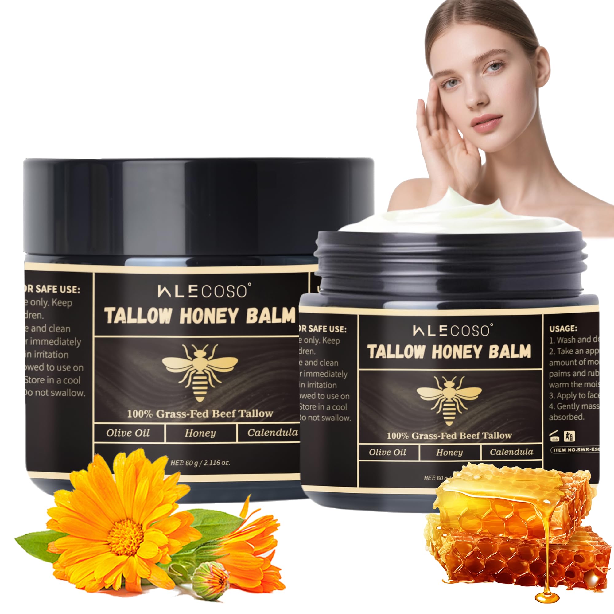 Safe for All Skin Types Use a small amount to dab and rub onto desired skin areas in a circular motion for better absorption. Suitable for all skin types, our whipped tallow balm ensures a gentle and soothing experience. Quick Absorption Non-Greasy Our thick yet fast-absorbing beef tallow moisturizer ensures long-lasting hydration without leaving a greasy residue. A little goes a long way, making it ideal for daily use as a tallow face moisturizer on the face, hands, and body. Say hello to nature's intended skincare Grass-fed Beef tallow is renowned for its nutrient-rich properties. Packed with vitamins A, D, E, Made with all-natural, chemical-free ingredients including high-quality beeswax and raw honey, this tallow face moisturizer is free from artificial fragrances and preservatives, making it perfect for those with delicate or reactive skin. One cream for multiple purposes Experience whole-body moisture as our effortlessly hydrates your face, hands, feet, and beyond. Absorbing easily without any greasy or gritty feel, it's suitable for all skin types, offering relief for acne, dry skin, and sensitive skin. Deep Hydration and Skin Repair This tallow and honey balm is formulated with grass-fed beef tallow, raw wild honey, and beeswax to deeply nourish the skin, lock in moisture, and help restore dry, irritated, and sensitive skin, leaving it soft, smooth, and radiant.